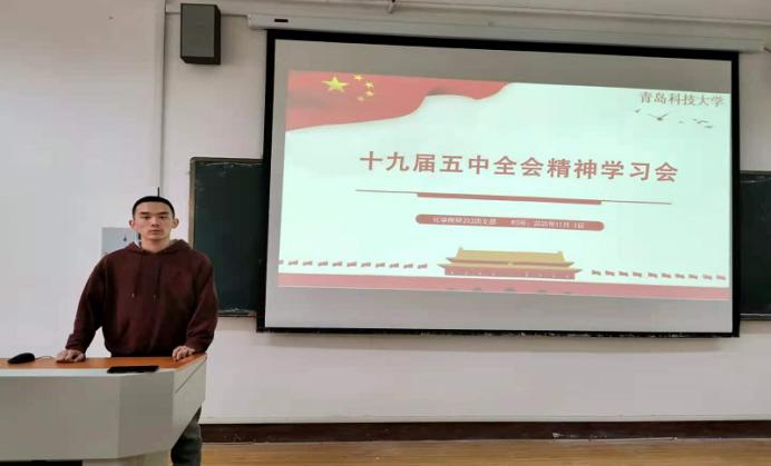 化学院研究生会成员共同观看了“党的十九届五中全会精神中央宣讲团报告会”,观看结束后学生干部代表分享了自己的感悟,结合五中全会精神,一同对五中全会精神与新时代学生干部的联系进行了讨论,努力将五中全会精神运用到研究生会工作中去。通过线上、线下两个途径的学习,化学院研究生进一步认识到了深入学习贯彻全会精神,把全会精神和各项目标任务切实转化为共同认识和坚定行动的重要性。