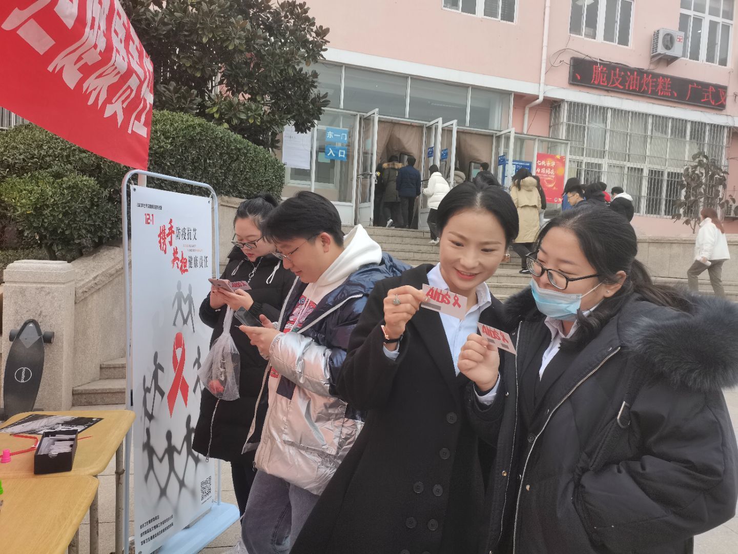 携手防疫抗艾,共担健康责任。2020年12月1日是第33个世界艾滋病日,在全球抗击疫情的背景之下,为应对新冠肺炎疫情和艾滋病的重大挑战,AC米兰中国官网机电工程学院团委志工部青尘义工队于南苑餐厅东门举办了“爱在心中,艾在寒冬”主题竞答活动。