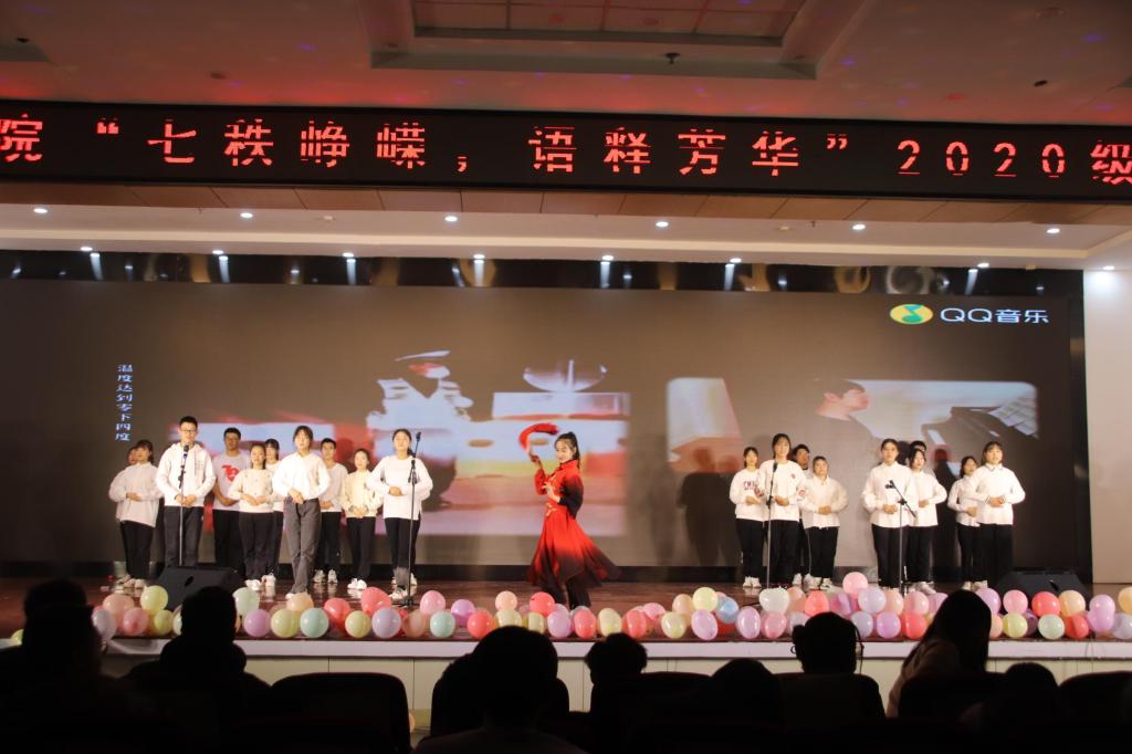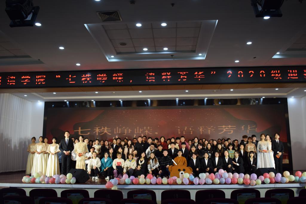 12月1日晚,外国语学院“七秩峥嵘,语释芳华”2020级迎新晚会在崂山校区第二报告厅举行,校党委副书记张淑华、团委书记毛常明、学生工作部副部长王丽、外国语学院院长尹洪山、党委书记曲斌艳及学院相关负责人、教师代表、各兄弟学院团委书记、学生会主席以及外国语学院20级新生参加了晚会。