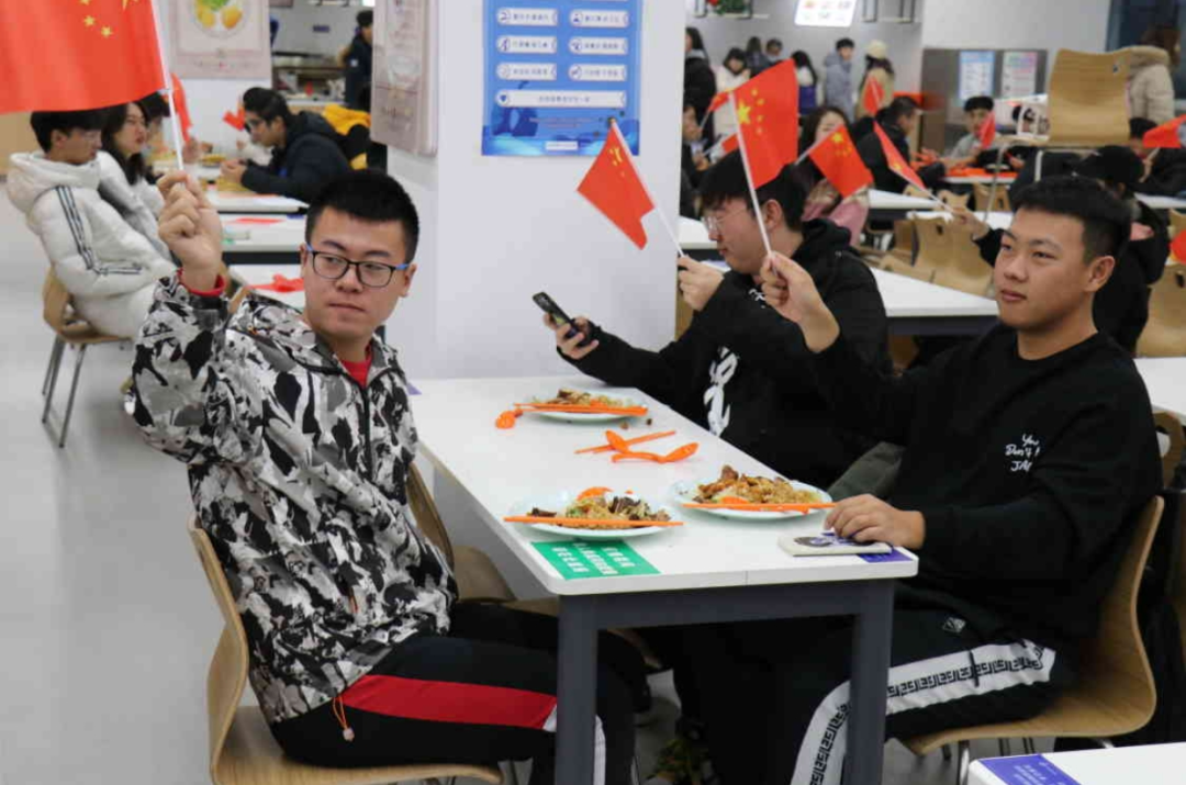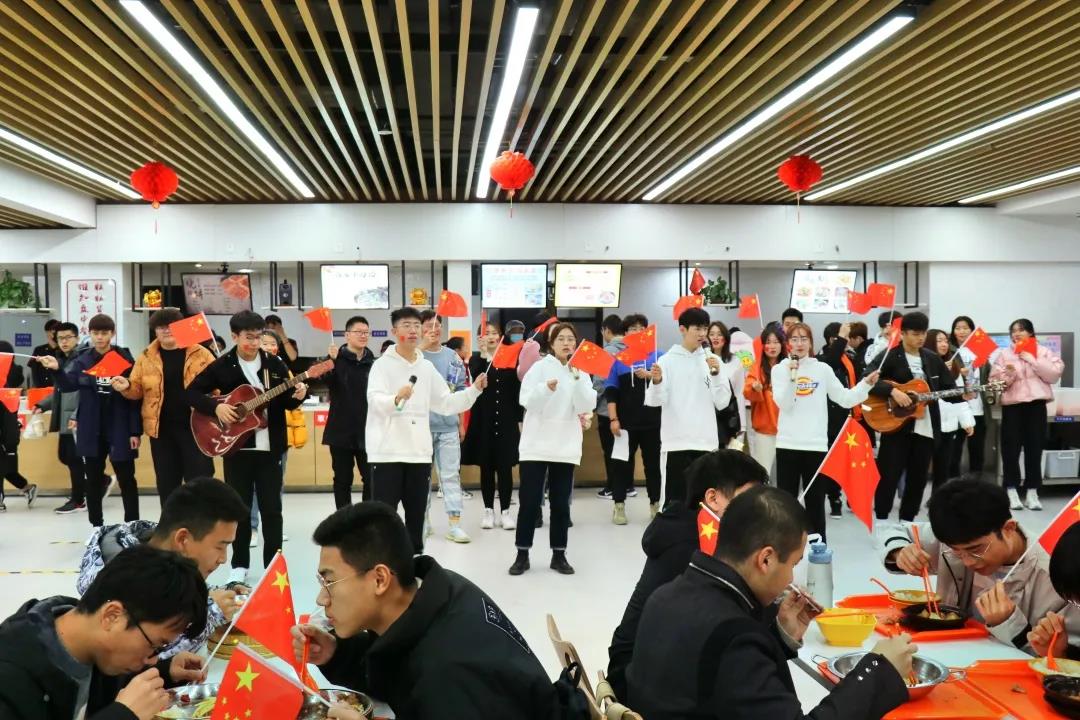 教室里、食堂上,大家一起挥动着手中的国旗,加入到了歌唱伟大祖国的行列之中。洪亮的歌唱了《国家》、《我爱你,中国》等歌曲,他们用自己青春的声音,歌颂一二·九运动,歌颂祖国,歌颂新时代,抒发新时代青年人的爱国情、报国志和强国心。