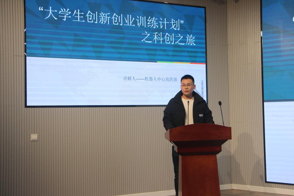 为提高同学们创新思维、掌握创新方法,助力我院学子在“大学生创新创业训练计划项目”和“中国高校智能机器人创意大赛”中斩获佳绩。12月10日晚,由机电学院科创部策划举办的“机电开讲啦—比赛归来话收获”第二期在机电楼530成功举办。本期邀请到机器人中心负责人高凯强和PPEC实验室负责人沈旺作为主讲人。