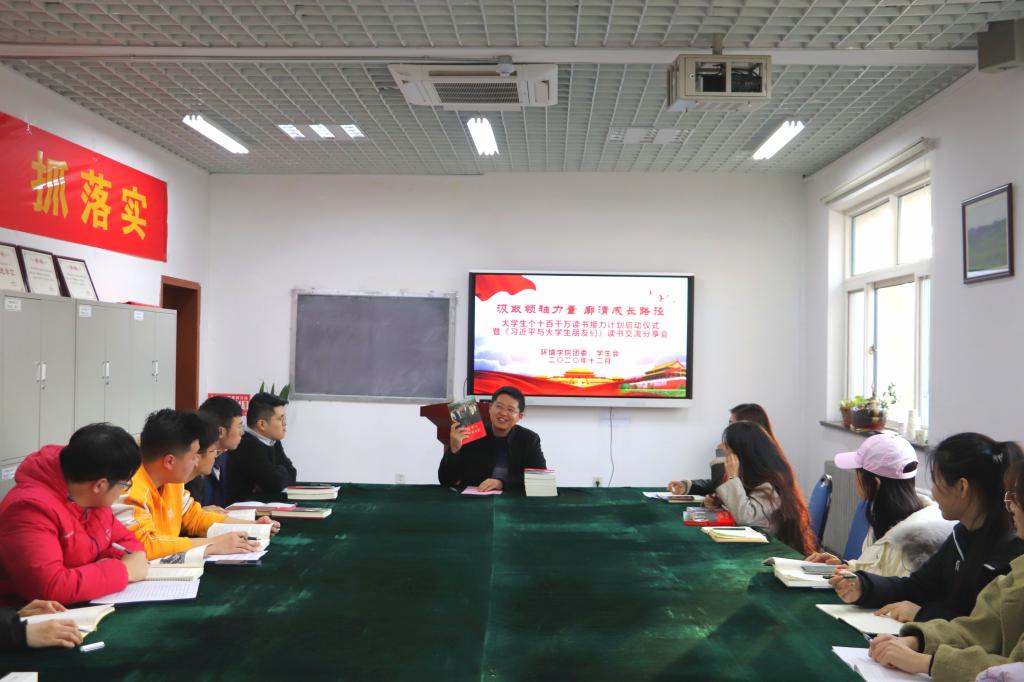 为落实立德树人根本任务,引导广大青年学生养成“多读书、读好书、好读书”的良好习惯,环境学院召开“汲取领袖力量,廓清成长路径”大学生个十百千万读书接力计划启动仪式暨《习近平与大学生朋友们》读书交流会。学院党总支副书记兼副院长贾可好出席会议,全体专兼职辅导员、学生代表、研究生代表参加此次活动。