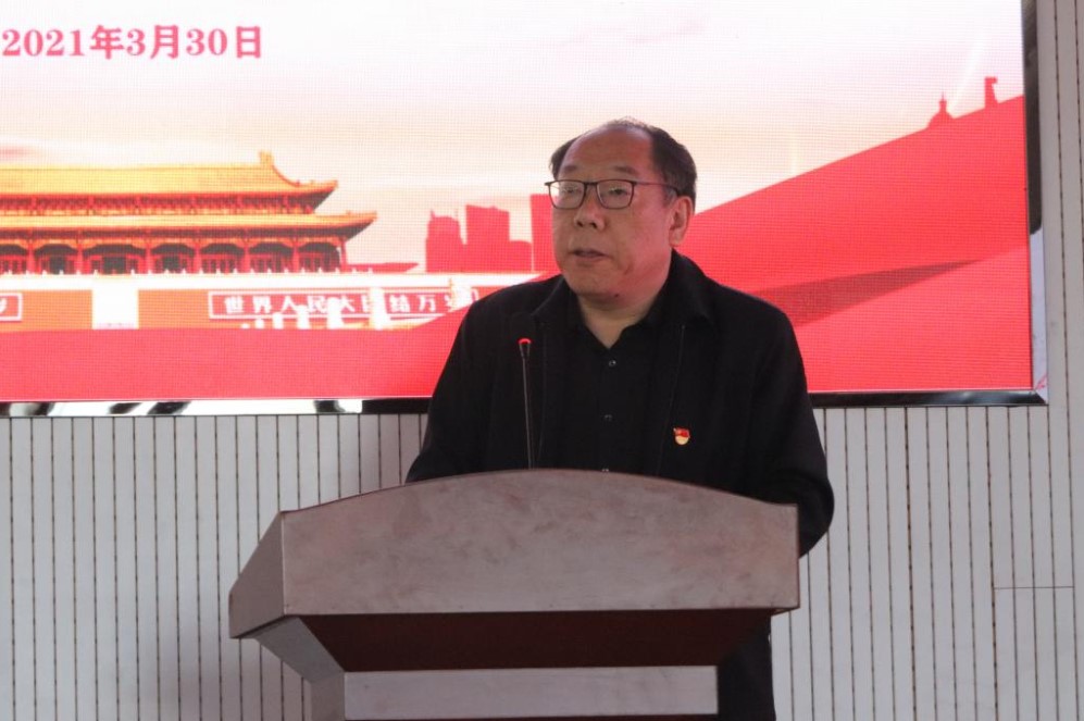 会议开始前,全体党员集体观看学习了《中国共产党百年述职报告》微视频,学院党委书记孙立军作动员讲话,指出,学习党史要提高政治站位,持续增强理论武装的政治自觉,做党史学习教育的先行者,各党支部和广大师生党员要重视历史、学习历史、研究历史、借鉴历史,上好学习党史这堂必修课,切实把党的历史学习好、总结好,把党的成功经验传承好、发展好;学习党史要突出学史明理,始终掌握事业发展的历史主动,做优良传统的传承者,各党支部和广大师生党员要把明理作为增信、崇德、力行的前提,从党的辉煌成就、艰辛历程、历史经验、优良传统中深刻领悟中国共产党为什么能、马克思主义为什么行、中国特色社会主义为什么好等道理,弄清楚其中的历史逻辑、理论逻辑、实践逻辑;学习党史要发扬革命精神,始终保持艰苦奋斗的昂扬精神,做干事创业的奋斗者,各党支部和广大师生党员要把抓好党史学习教育和推进重点工作紧密结合起来,全盘谋划、统筹兼顾、一体推进,力戒形式主义、官僚主义,防止出现学习和工作“两张皮”。