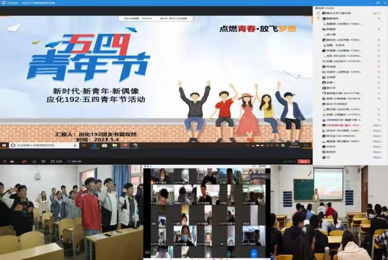 重温五四精神,勇担时代重任。化学院组织各团支部开展上团课、学团章、知党史团情等主题团日活动,通过重温入团誓词,出团旗,奏团歌,观看《入团第一课》教学视频,加深广大团员的团员意识和历史使命感。组织学院团学青年在5月4日收看共青团中央、全国学联“学党史 强信念 跟党走”主题云团课,铭记波澜壮阔的百年历史,汲取精神养分。