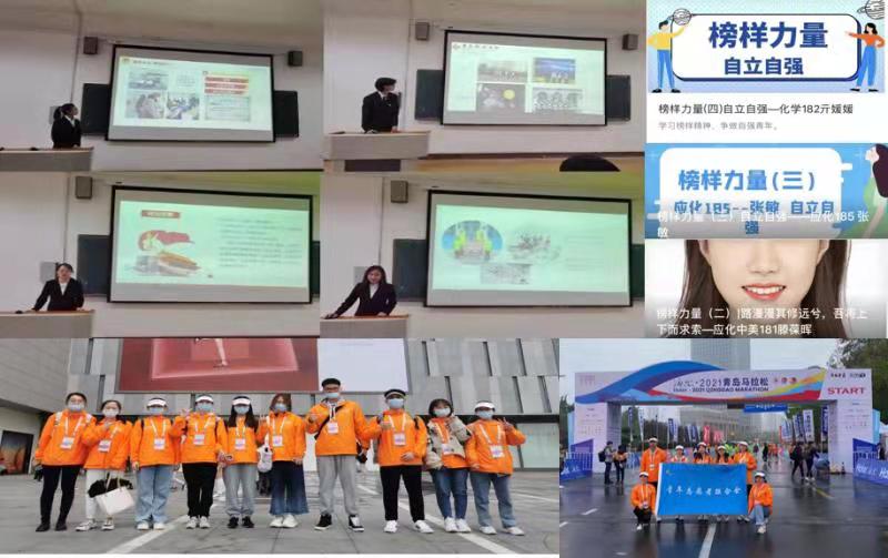 学习榜样精神,凝聚前行力量。化学院组织各团支部开展“青春心向党·建功新时代”优秀青年典型事迹分享会,学院十大自立自强标兵分别从学业成绩、学科竞赛、学生工作、公益服务等方面分享了自己入学以来的成长及变化,激励广大学生学先进、当先进,从典型身上汲取奋进动力,同时积极动员学院青年学子参与2021青岛马拉松志愿服务活动,彰显志愿服务精神。
