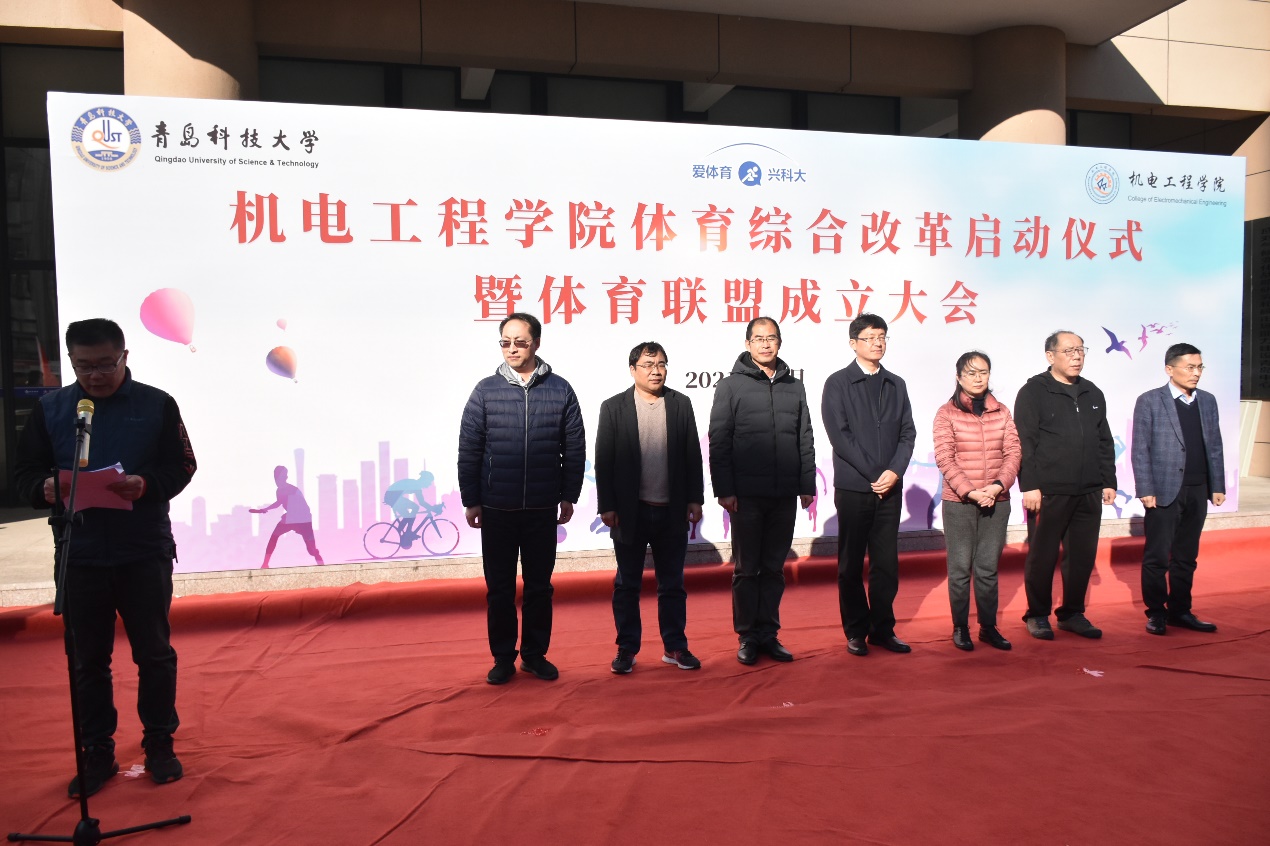 为积极响应学校体育综合改革,助力学院体育工作高质量发展。11月9日下午,机电工程学院体育联盟综合改革启动仪式暨体育联盟成立大会举行在机电大楼前举行。学校团委书记毛常明,学院党委书记孙立军,机电学院院长何燕,学院党委副书记兼副院长肖强,副院长张卫锋、李剑光以及学院团委全体专职兼职辅导员以及学生代表参加本次活动。