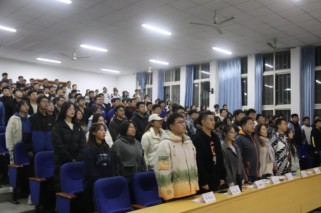 活动过程中,8个班级依次上台进行班级风采展示。各班汇报人结合ppt向各位老师和同学展示各班的班徽和班旗,并阐述班徽和班旗的寓意。紧接着,各班演唱本班班歌。班歌风格多样,歌声婉转悠扬,尽展风采,以歌声唱响了爱班荣班的主旋律,展现了班级团结一心与拼搏努力的青春力量,现场掌声不断。