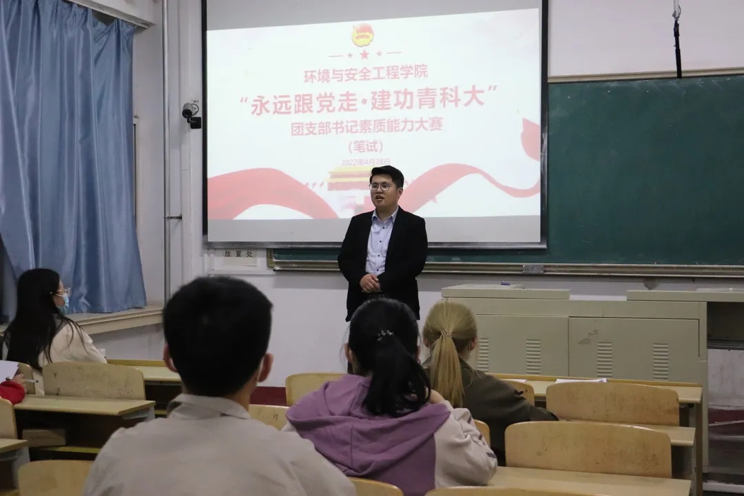 为贯彻落实习近平总书记关于青年工作的重要思想,持续推进共青团改革向纵深发展,切实抓好基层团支部活力提升工程,提升团支部书记的综合素质,在五四青年节到来之际,环境学院于4月28日下午在二教开展“永远跟党走·建功青科大”团支部书记素质能力大赛初赛。