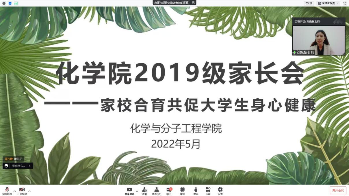 化学院召开“化合同心,家校合育”心理健康主题线上家长会