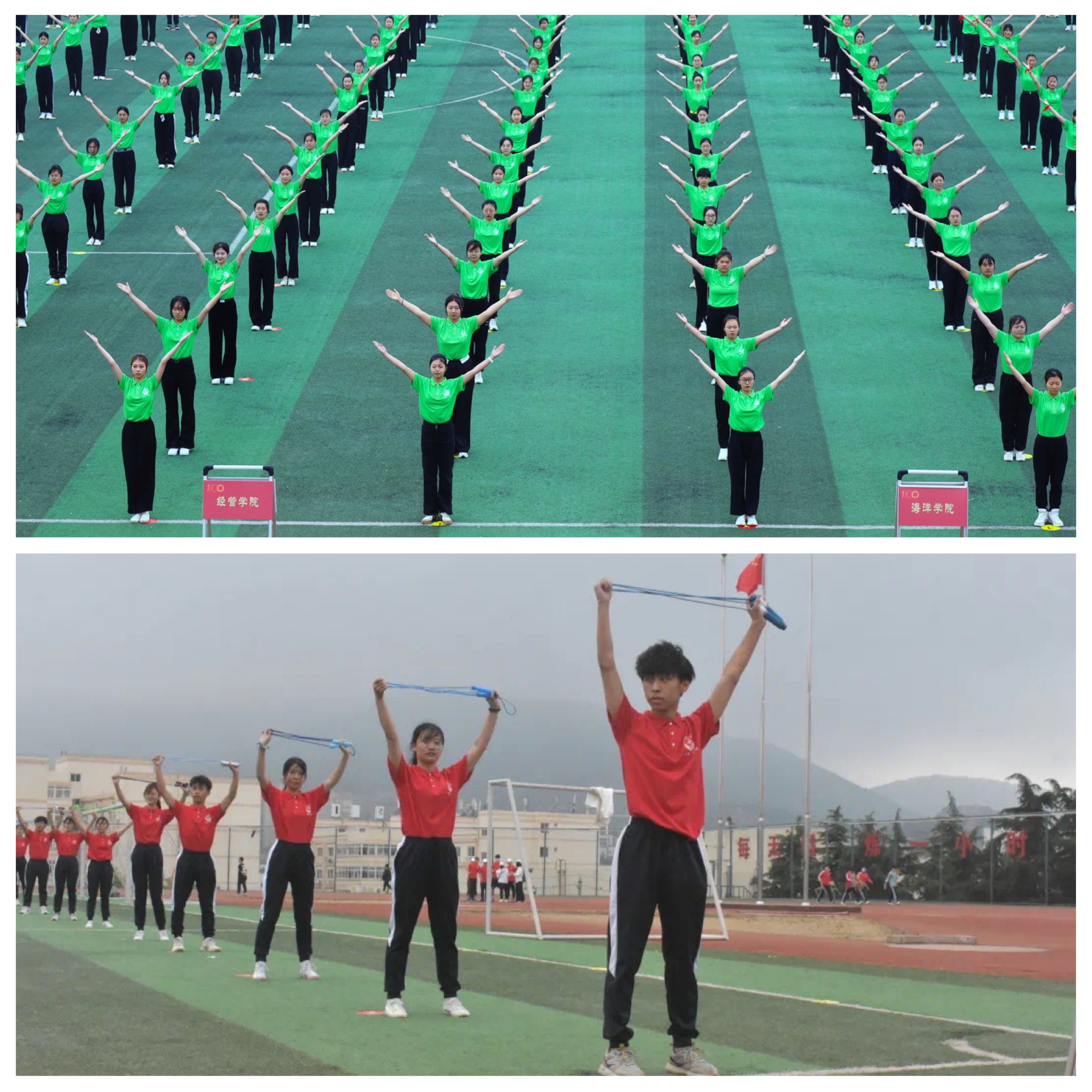 排舞联赛和跳绳联赛正式开始。海洋学院排舞队员们活力四射、激情飞扬,她们随着音乐舞动,在身体的伸展与旋转中展现着体育之美。跳绳联赛队员们举起手臂,挥动跳绳,处处洋溢着青春的气息,处处展现着青春的姿态。