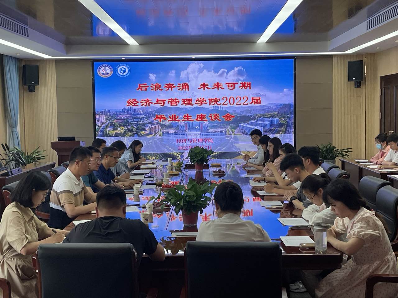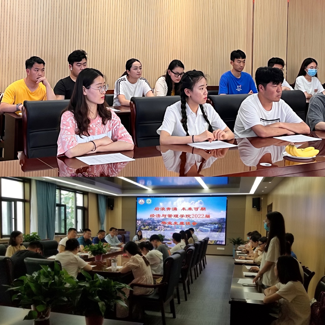 6月17日下午,经管学院“后浪奔涌 未来可期”2022届毕业生座谈会在经管楼313会议室举行。学院领导班子成员,毕业班辅导员以及各专业优秀毕业生代表共同参加了此次座谈会。座谈会由2018级辅导员张晓帆主持,进一步增强毕业生追寻梦想、立志成才的责任感和使命感,同时广泛听取学生对学院发展的意见建议。