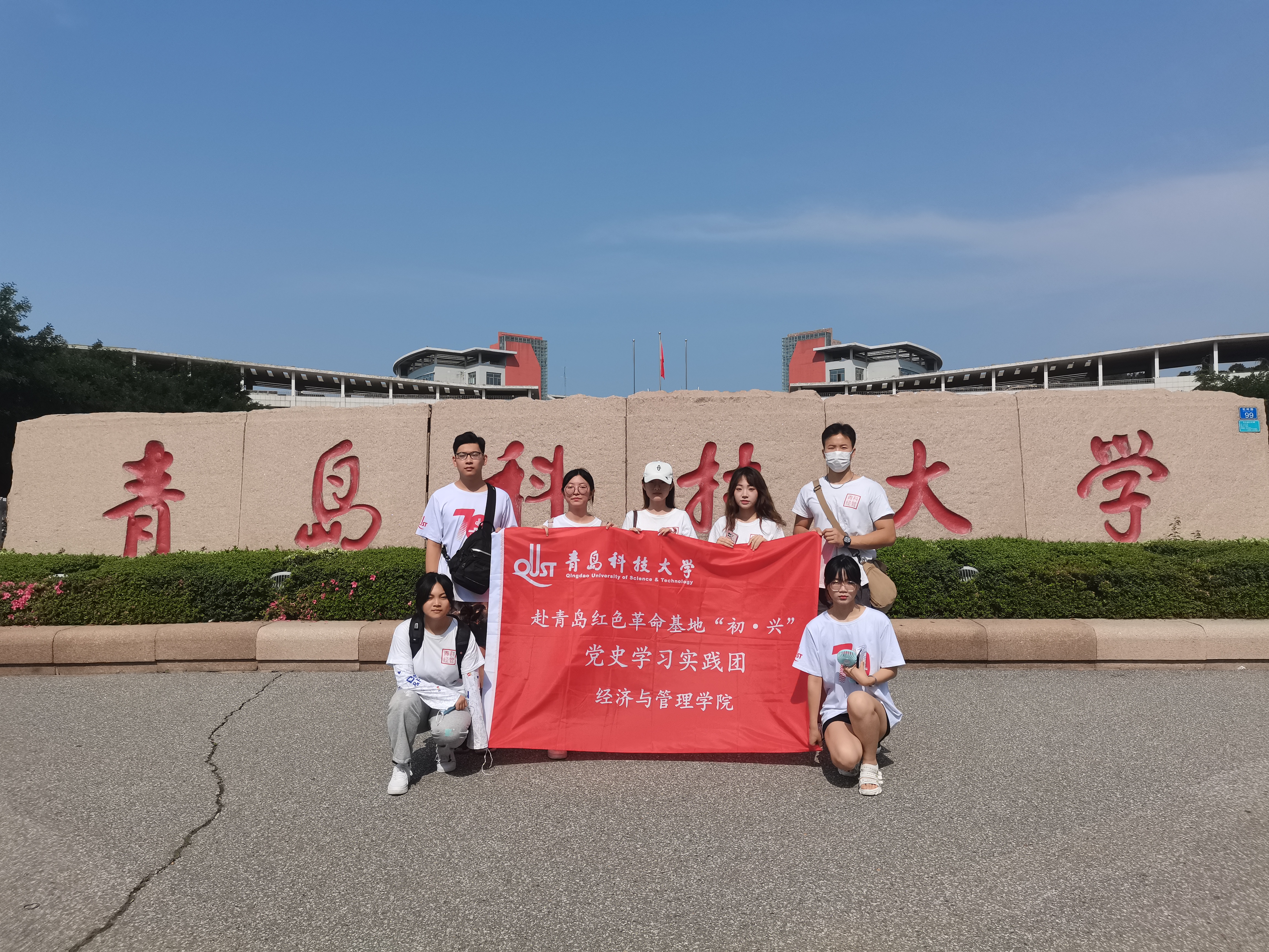 中山公园是青岛的一座综合性公园,由德国殖民者始建。1922年我国收回青岛主权后,改名为“第一公园“。整装待发后,成员们共同游览了中山公园,并重点瞻仰了孙中山先生的雕像。在宣讲员黄文菡同学的讲解下,团队成员回顾了孙中山先生一生为革命事业作出的贡献和中国共产党的光辉历程,了解了公园的建园历史和与之相随的中国艰苦革命历程,同时也吸引了不少市民与游客的关注。其中有一位农民导演在宣讲结束后留下与团队进行了交流,“我带领农民拍了一辈子戏,很多也是革命题材的,你们做的这个事情有意义啊,一定不能只当做是学校的任务来做,要坚持的做下去!“