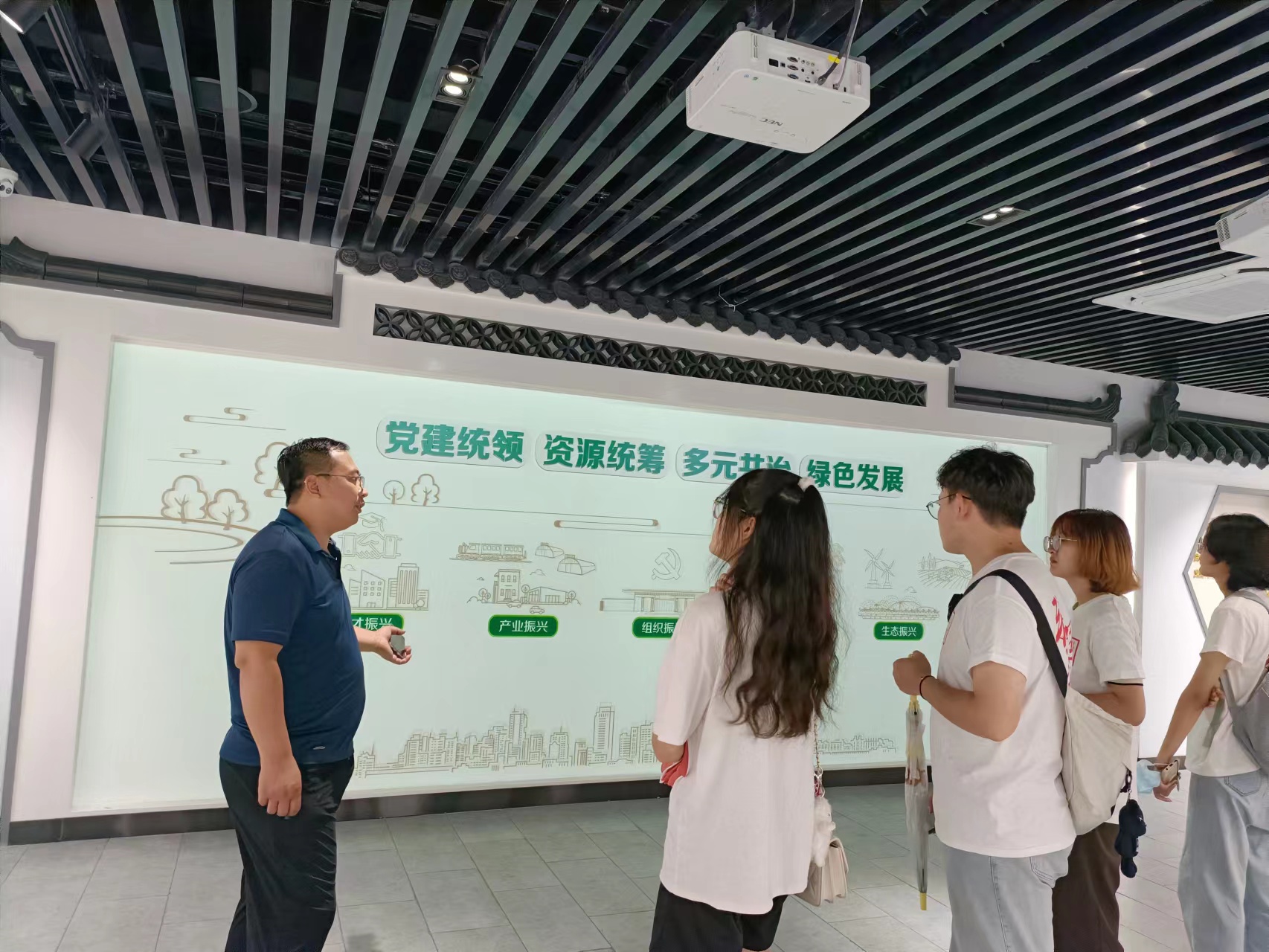 “这里不仅有古色古香的建筑,统一粉刷的白墙黛瓦,历史悠久的民俗文化……更体现着传统和现代文化交织的民俗风情,绿色发展的产业振兴战略,独一无二的生态宜居模式。这样的发展模式和治理效果更是我们值得学习与传承的乡村振兴经验”调研活动结束后,团队成员如是说。