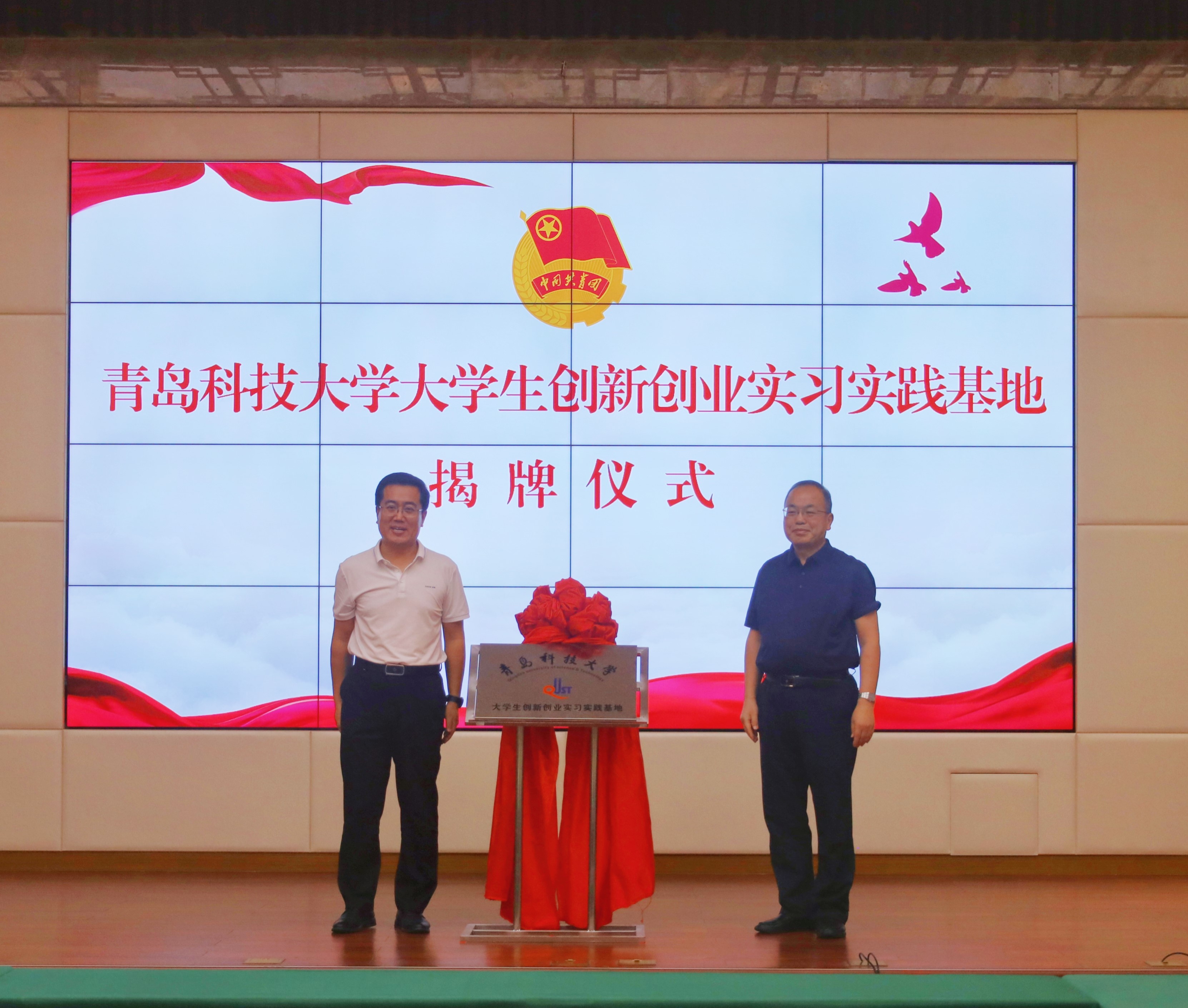 丁林、江峰共同为AC米兰中国官网大学生创新创业实习实践基地揭牌。