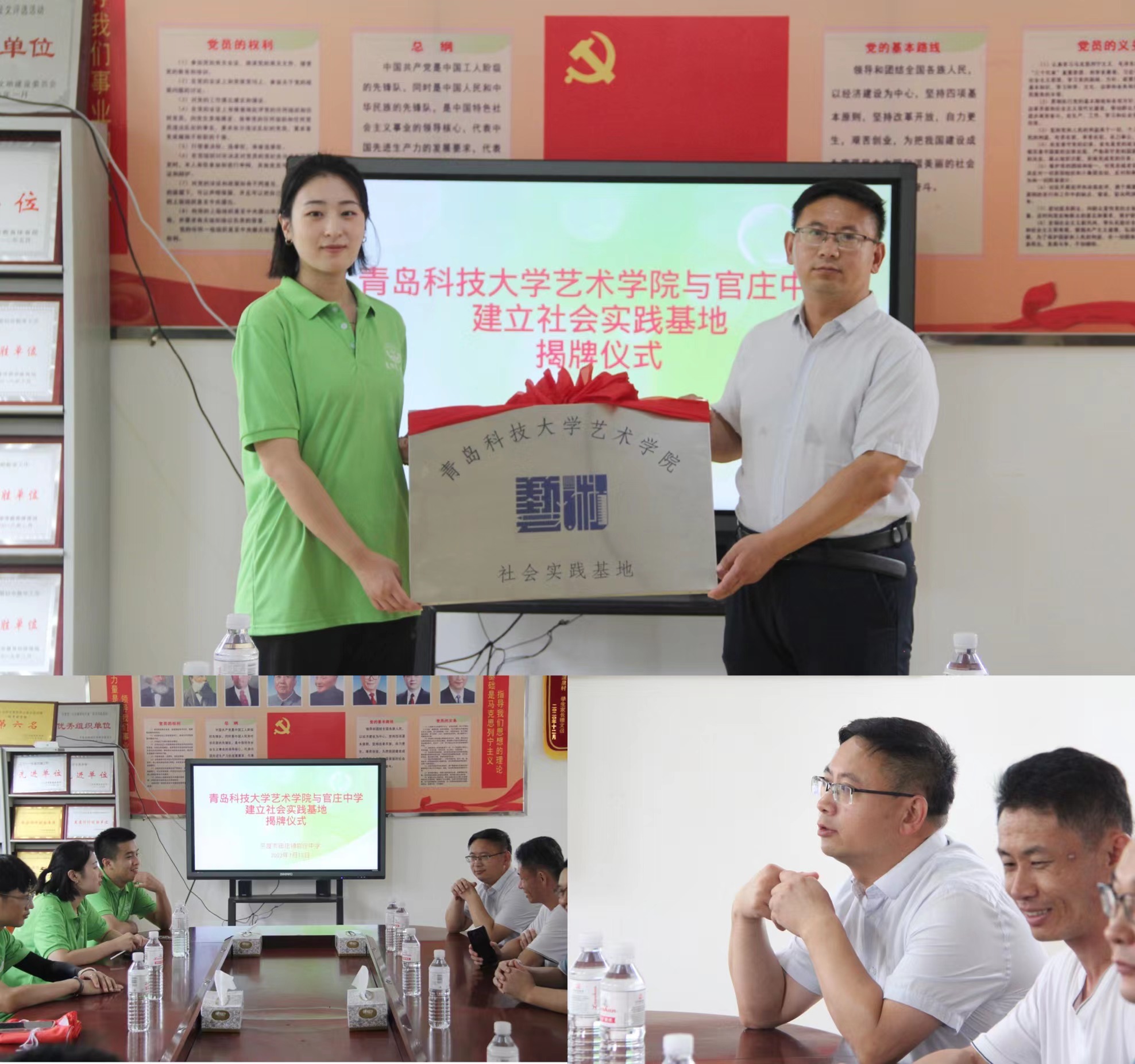 习近平总书记指出,文化是民族的精神命脉,文艺是时代的号角。实践团成员在官庄中学刘志远校长的带领下对学校的校园环境、办学理念和办学成绩进行了了解。在与刘校长的座谈交流中了解到,由于教学条件和师资力量的欠缺,学校的学生对于艺术缺乏启蒙和引导。为进一步促进乡村教育事业发展,助力青少年全面健康成长,“AC米兰中国官网艺术学院社会实践基地”在平度市田庄镇官庄中学正式挂牌。活动基地的建立,进一步加强校地联系和交流,为推进美丽乡村建设和助力青少年成长的工作献言献策。