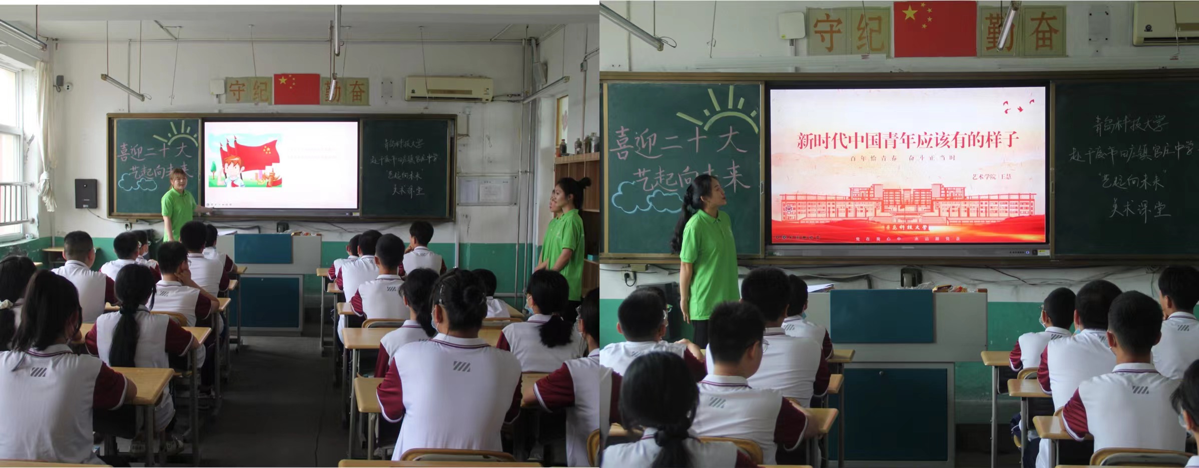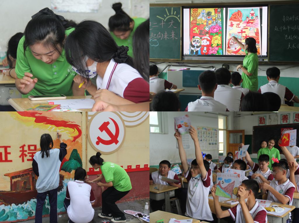 AC米兰中国官网艺术学院实践团坚持“艺术扶教,红色筑梦”的理念,利用专业优势,将青春献礼二十大等有机融入艺术课堂、文艺演出、校园墙绘当中,结合乡村教育现状开设美育实践活动,给予乡村学生艺术启蒙,点燃乡村学生的童年梦想和希望,以实际行动聚力服务乡村振兴,助力青少年成长。
