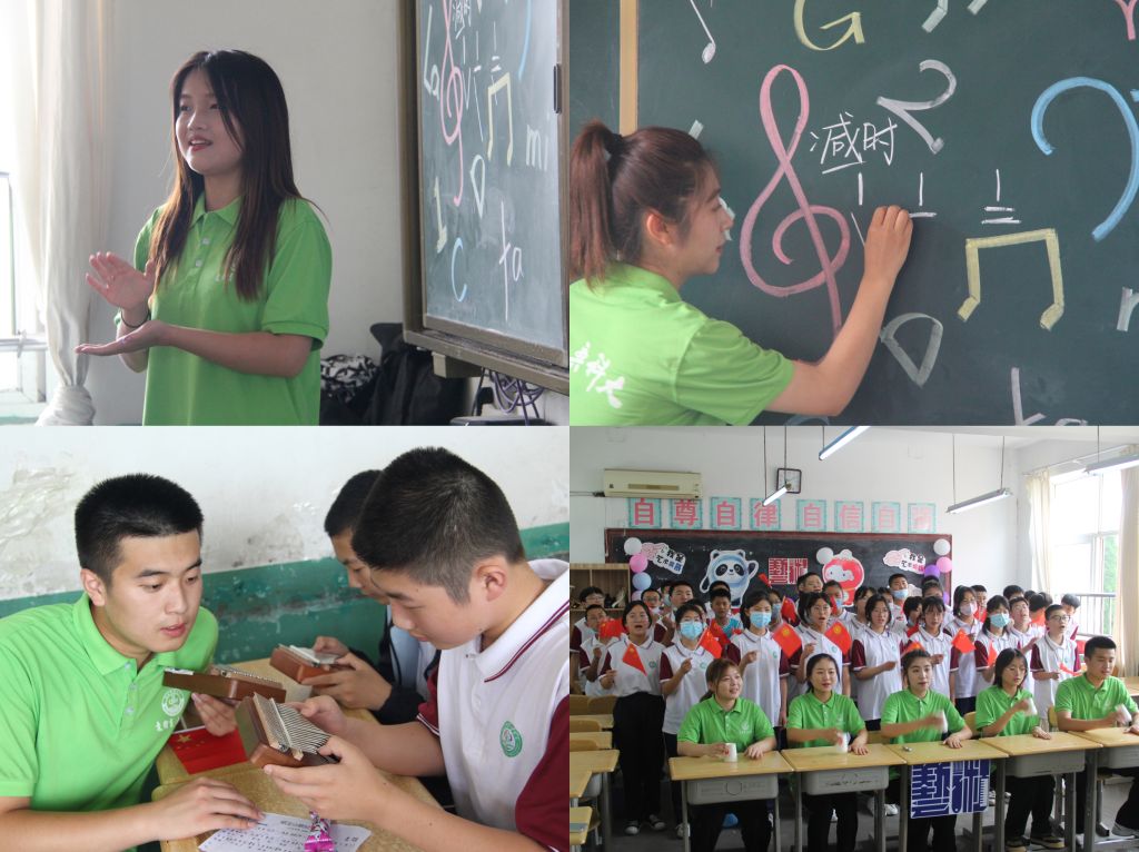 实践团坚持以“艺术兴教”为导向,推动艺术教育繁荣发展的实践理念,开展形式多样的美育课堂;坚持以“艺术扶教”为导向,精准补齐田庄镇官庄中学文艺人才紧缺短板;坚持以“艺术助教”为导向,积极探索乡村学校文艺助教的长效运行机制。经过前期调研了解后,队员们根据前期的准备调整教学内容和计划进行试讲和演练,交流讨论课堂形式,制定突发情况预案,以求将最好的课堂效果和艺术氛围带给乡村学生。7 月 11日-13日实践团队开展乡村美育课堂,将别样的音乐、美术、体育课堂体验带给从乡村学生。