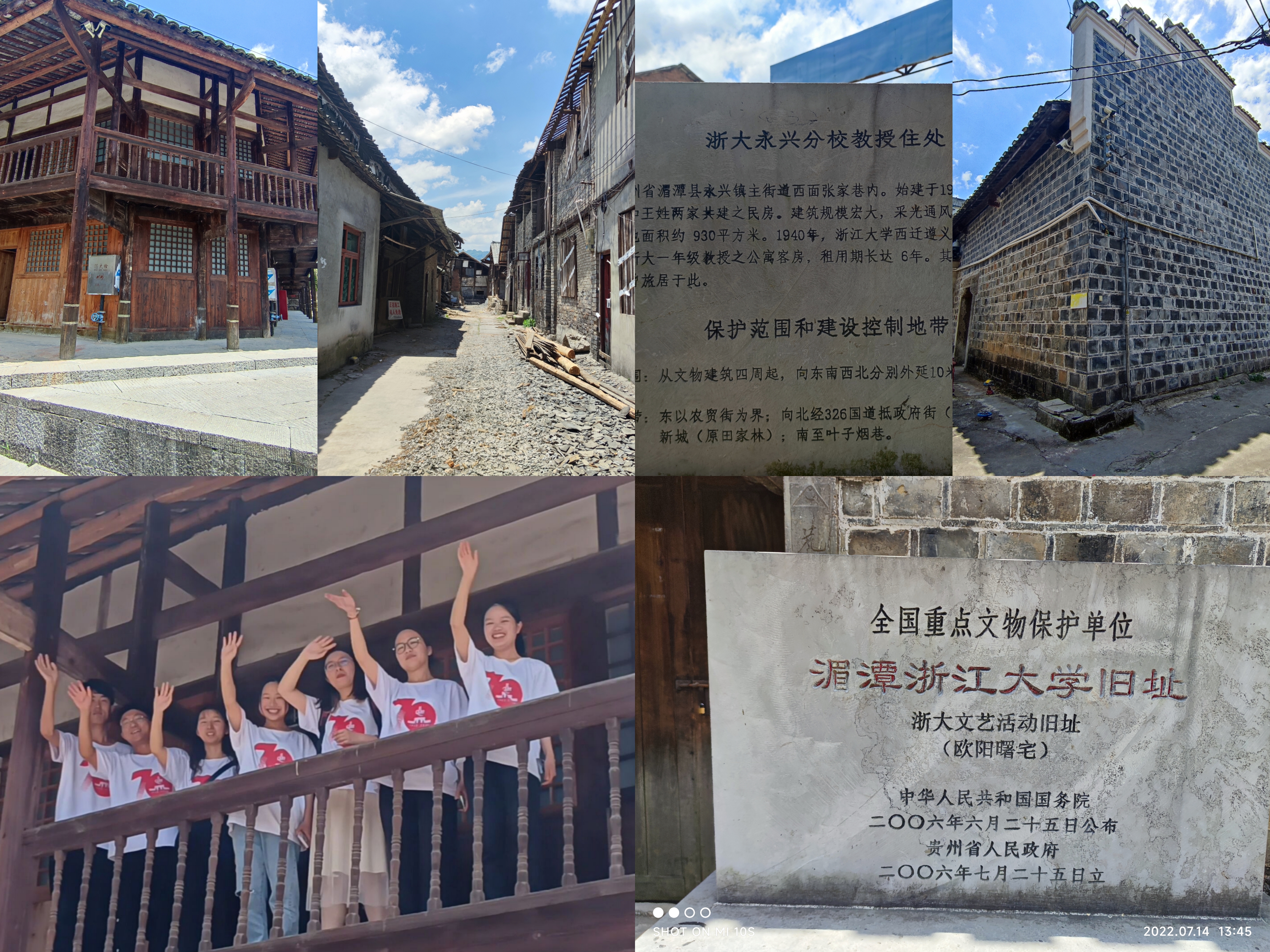 翌日,实践团队前往湄潭浙大旧址进行参观学习。走在昏暗的教室内,踏着木板发出的“嘎吱声”,浙大学子孜孜不倦“为中华之崛起而读书”的求学场景浮现在眼前。看着这座极具厚重历史的建筑,感受到的是浙江大学的求是精神和永兴人民无私援助的奉献精神。红色文化传承与发扬,关键在于青年,在于怀抱理想、甘于奉献的追梦人,在于为了中华民族的伟大复兴不懈奋斗的我们