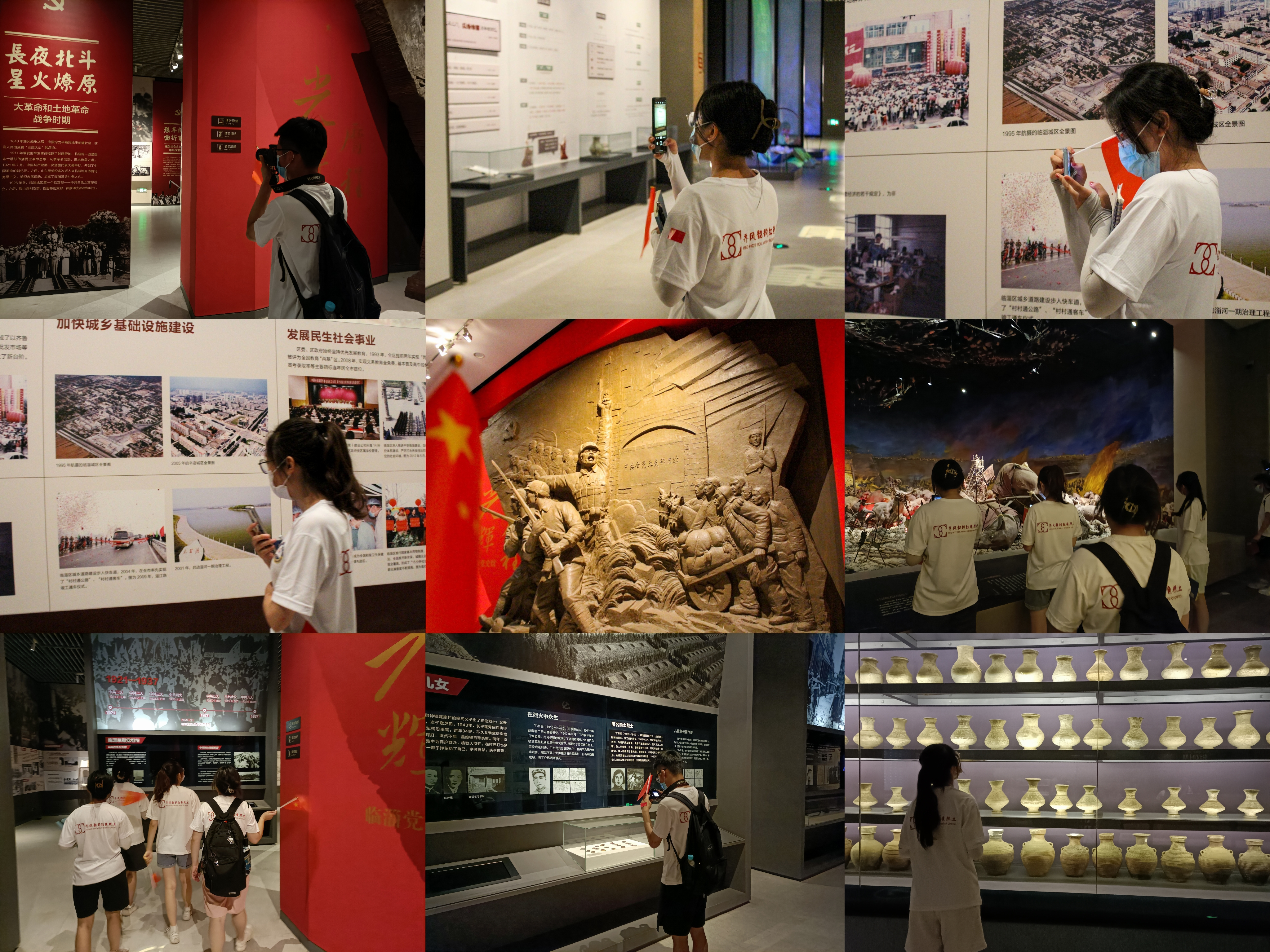 其次,团队成员来到了党史学习展览馆,对党史文化进行参观学习。团队成员了解到,淄博不仅拥有悠久璀璨的齐文化,其红色文化也源远流长。通过参观学习,同学们学习了老一辈共产党人艰苦奋斗、创业实干的精神,在参观中感受和传承红色精神,抗日战争时期淄博人民积极响应党的号令,踏实、实干,艰苦奋斗,为中国革命事业奉献自己的力量。