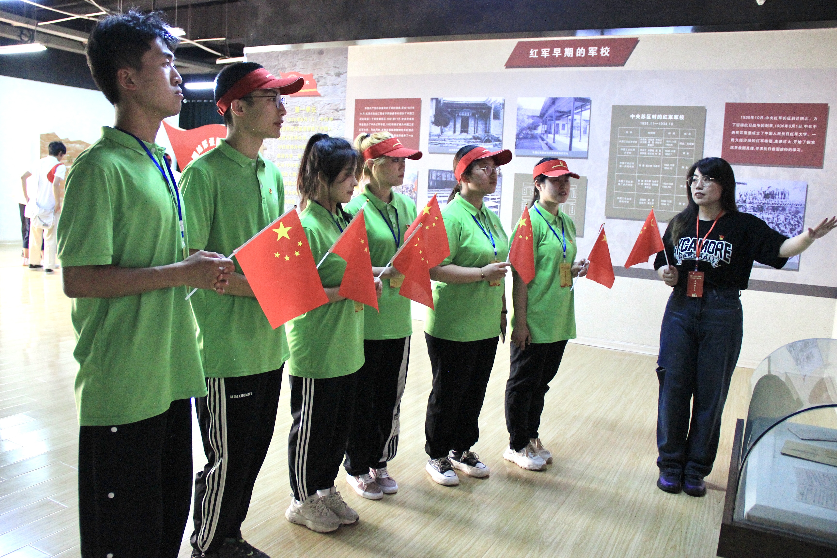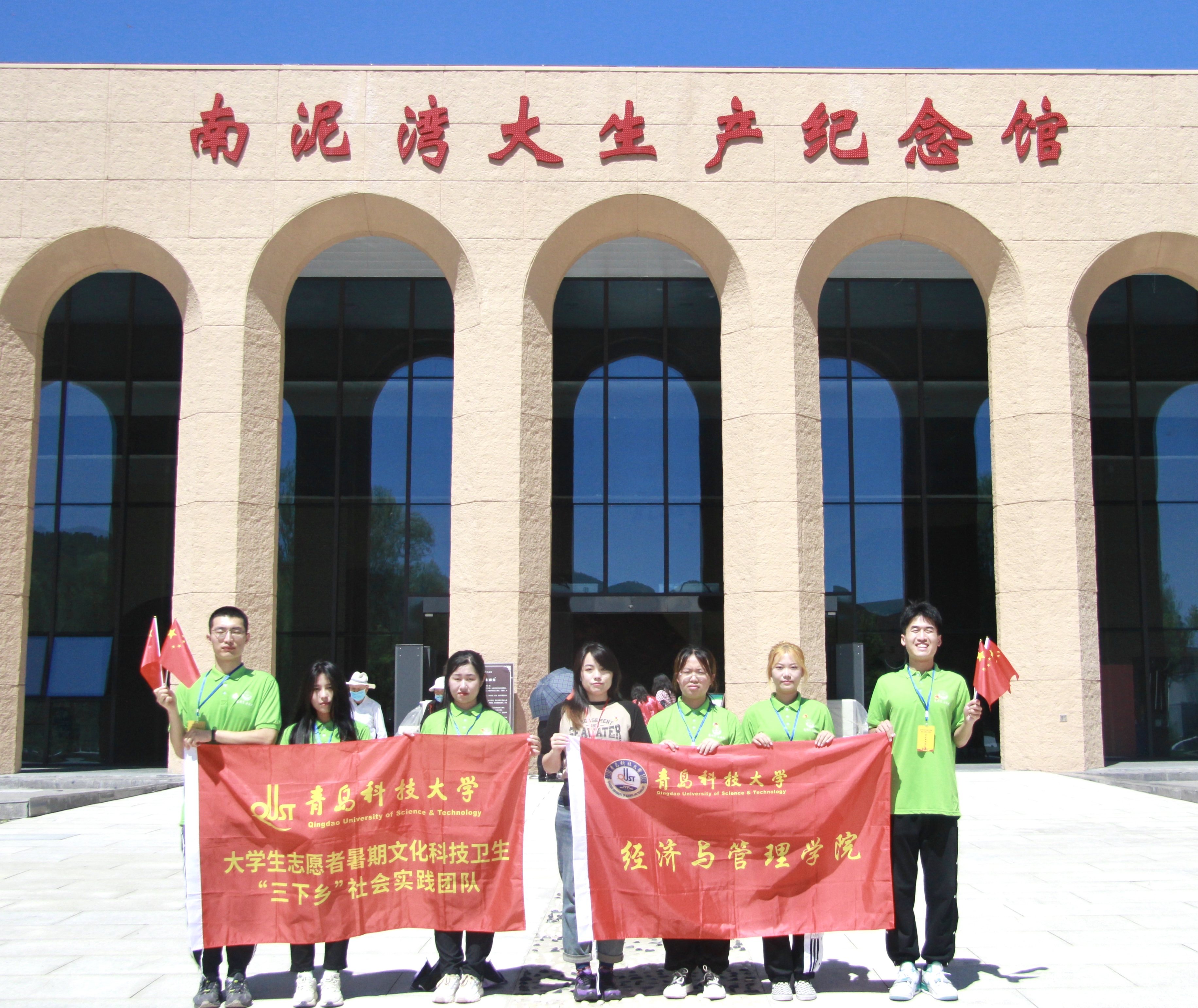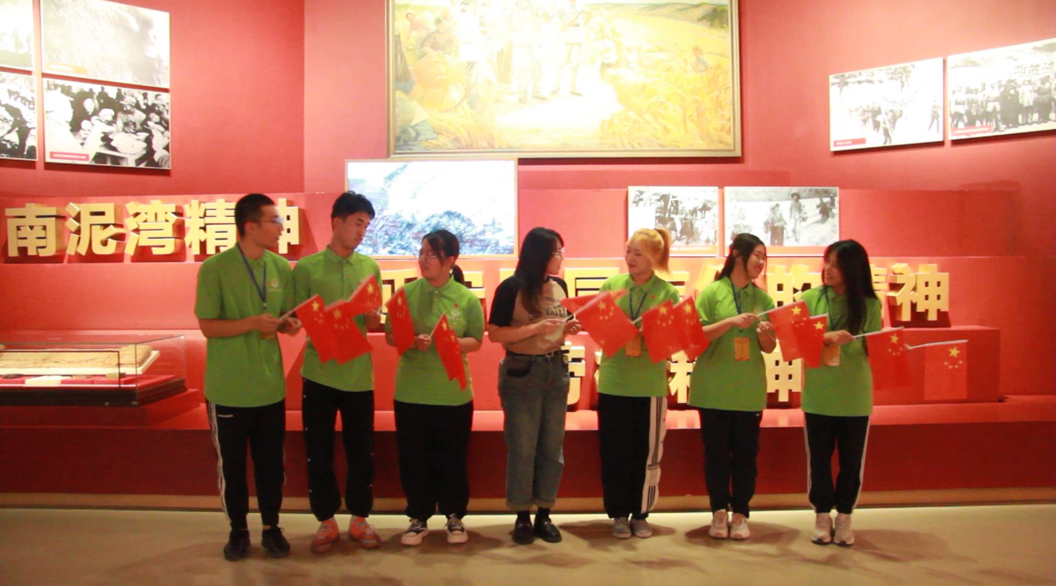 实践团队员在大生产纪念馆跟随着讲解员的介绍,见证了党的峥嵘历史,感受了南泥湾精神的厚重。在这方阳关普照的大地上,在这片生机盎然的田野里,队员们深情唱起了歌曲《南泥湾》,手中的红旗迎风而动,与万里晴空交相辉映,热情歌颂了开荒生产建立功勋的八路军战士,重温了抗战时期大后方军民自力更生、奋发图强的延安精神,帮助同学们深切感悟到如今的幸福生活是在革命先烈的鲜血与牺牲中诞生的,我们应该倍感珍惜,铆足力气,共同实现中华民族伟大复兴的中国梦,建设一个更加强大、美丽的祖国。