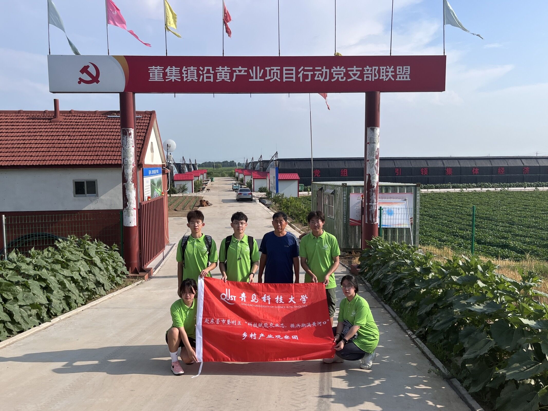 为进一步探寻东营市乡村农业的发展状况,了解垦利区“科技支农”技术的发展,7月30日,团队成员选取位于杨庙社区西南部的董集镇沿黄产业项目行动党支部联盟作为沿黄农业示范带考察样本。