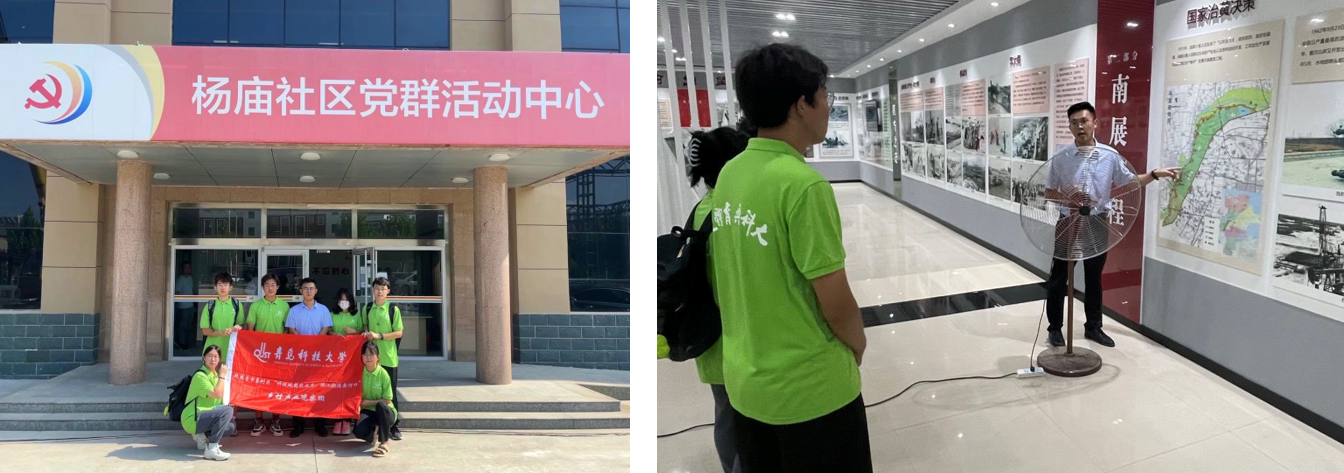 调研伊始,团队成员参观了南展区历史文化展馆,展馆内的内容讲述了杨庙社区在当地党支部的组织下成功解决了黄河迁建问题,他们积极发挥沿黄地域优势,大力发展果蔬种植、乡村旅游等产业,加快新型农业基础设施建设,建立循环农业示范园、冷链仓储物流园等,形成了沿黄农业示范带产业振兴的新格局。