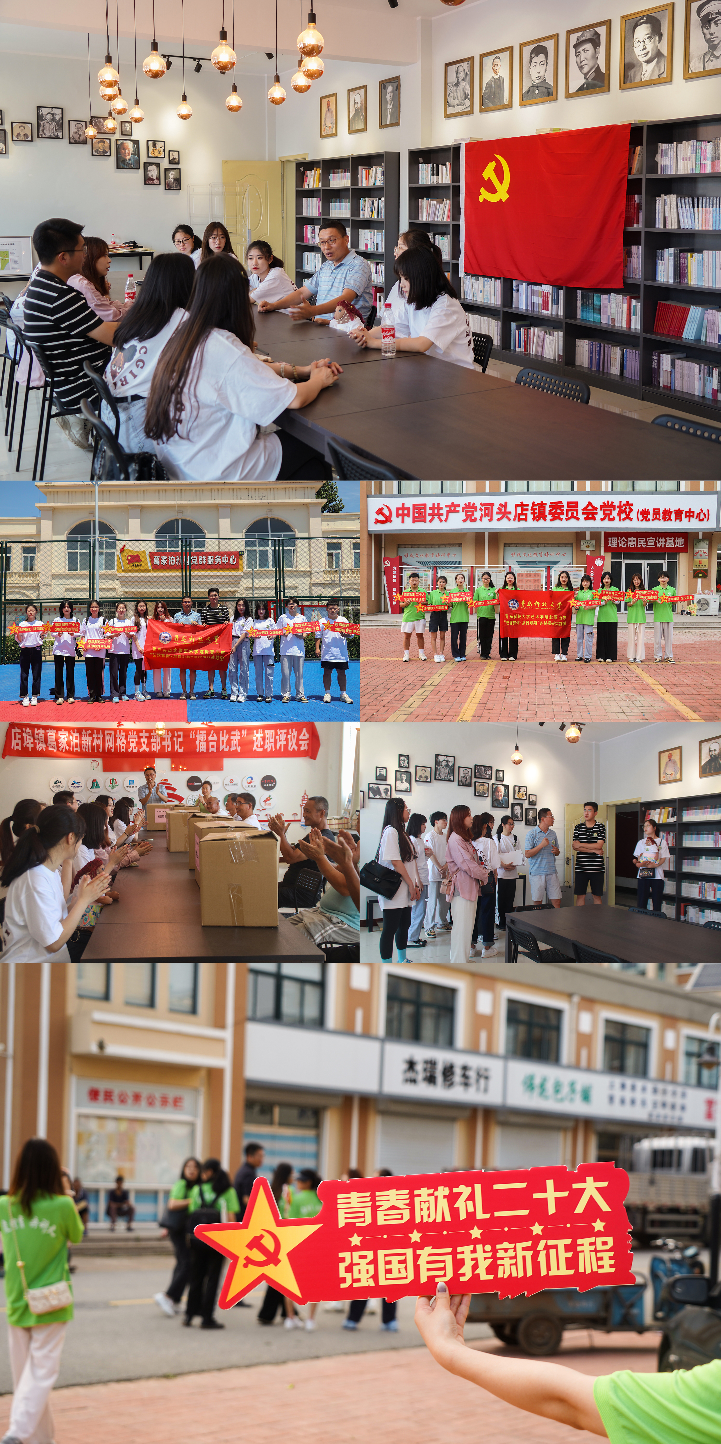 为了用党的初心使命感召青年,用党的光辉旗帜指引青年,实践团围绕“喜迎二十大·奋进新征程”主题,分别与河头店镇党委、店埠镇葛家泊新村党支部结对共建,举行了形式多样的特色党课,结合当地党支部结对共建的模式和基层党组织如何在乡村振兴中发挥引领作用等问题进行讨论。青年学生党员纷纷表示,应充分发挥党建引领作用,设计党史学习教育手持牌,在寻找当地红色打卡地标中感悟党从筚路蓝缕到走向辉煌的历史过程,深化党史学习教育成果,践行“请党放心,强国有我”的铮铮誓言。