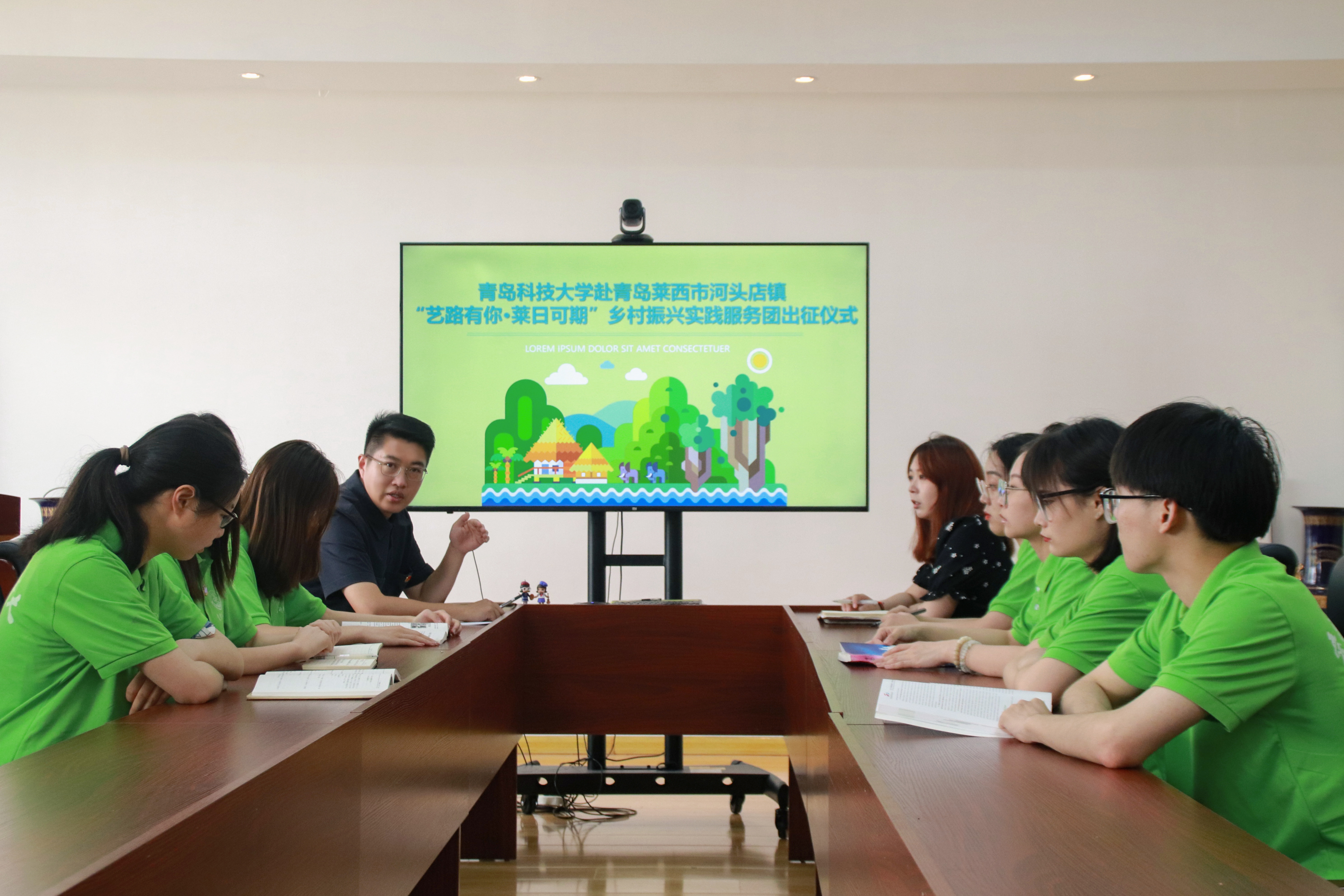 实践团围绕乡村振兴示范片区考察龙泉湖景观建设,体验龙泉云堤露营,在示范区现有基础上融入新文创设计理念,指导示范区打造“大河文化”品牌,发展各具特色的乡村富民产业,为乡村振兴立根塑魂。同时实践团成员结合专业方向,设计富有特色、具有观赏性实用性,蕴含了当地乡村旅游资源特征和乡村文化内涵特征的文创元素,有声有色地创作出艺术设计与乡村振兴的底层逻辑与肌理纹路。实践团队长纪文慧表示“脚下是热土,远方是征程! 我们在莱西市河头店镇、店埠镇留下了青科大学子的足迹,也留住了我们弥足珍贵的回忆。在这条乡村振兴的路上,我们用艺术之美弘扬文化,用设计之力助力振兴,用音乐之声启迪心灵。我们将继续不忘初心,予梦前行,继续奔赴青春的热土上”。