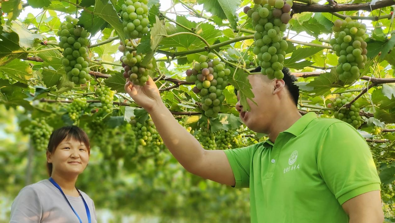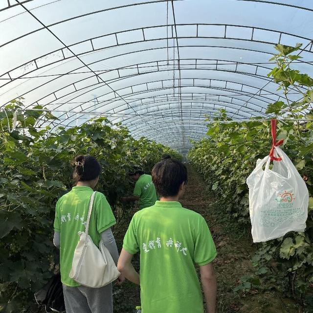 7月22日,实践团队到达黄河涯伍德水果国际农场。在这里,队员们对菊花进行了仔细观察。菊花的种植不仅可以使农民发展特色菊花种植产业,增加农民就业和收入并依托企业将菊花加工成高附加值产品,还能吸引更多的人过来观赏,发展旅游业;接下来团队成员跟随讲解员来到了实践活动的第二站——火龙果种植大棚。团队成员进入闷热的棚内,映入眼帘的是一排排形似仙人掌的枝茎。正值夏季,火龙果还处于花苞阶段。人们对水果的需求量一直很大,所以水果产业的发展对黄河涯镇整体经济发展具有强有力的推动作用;最后实践团队来到了本次实践活动的最后一站——葡萄种植大棚,葡萄园四周围绕着铁丝网,上面铺着一层渔网,每串葡萄上都套着一个白色纸袋,用来防虫,以提高葡萄的质量和产量。在讲解员的解说下,团队成员了解到了黄河涯镇的地理位置与气候条件都十分适合葡萄生长,所以推动与葡萄相关的产业十分重要,同样这也是推动黄河涯镇乡村振兴的中坚力量。