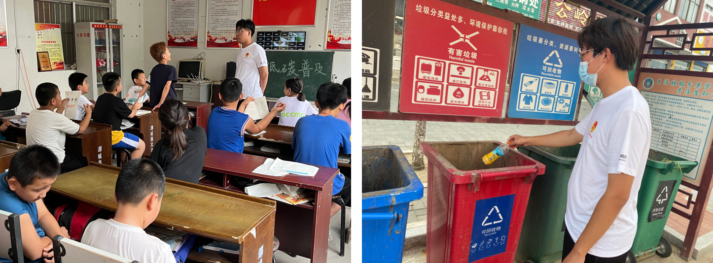 投身低碳宣传工作,永续绿水青山,是当今青年一代所肩负的责任。正如习近平总书记强调:“生态环境保护是功在当代、利在千秋的事业”。作为青少年的孩子们,往往处于人生理想信念和价值观亟待形塑的关键阶段,因此加强培养低碳环保理念尤为重要。本次支教活动,支教团以“垃圾分类”、“乡村环境保护”等热点知识为主导,辅以“以诗育人”、“言传身教”的特色教育思想,将低碳环保的绿色理念厚植于孩子们心中。心中有绿,脚下留青;支教助学,尽心而为。团队成员表示愿意利用专业所学知识,观察社会,了解乡村环境保护现状,助力乡村低碳知识的普及,为建成美丽乡村,建设社会主义现代化强国贡献青年力量。
