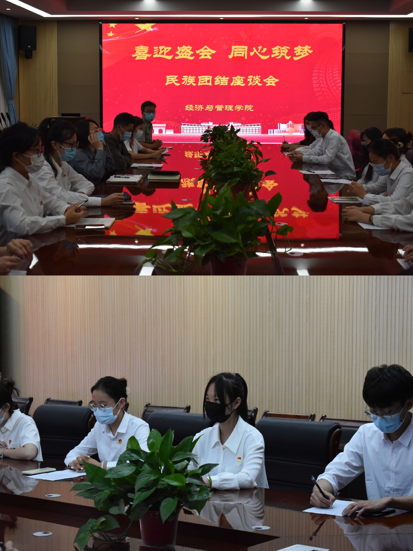 经管学院举办“喜迎盛会,同心筑梦”少数民族学生座谈会,不同民族、不同年级的学生代表敞开心扉、踊跃发言,从民族文化特色、个人成长经历等方面展开分享,对学校良好的学习氛围、和睦的民族团结氛围表达了热爱之情。学院教师代表在认真了解少数民族学生在校学习和生活情况后,勉励同学们要坚定理想信念,珍惜学习机会,铭记责任、增长本领,为实现中华民族伟大复兴奉献青春力量。