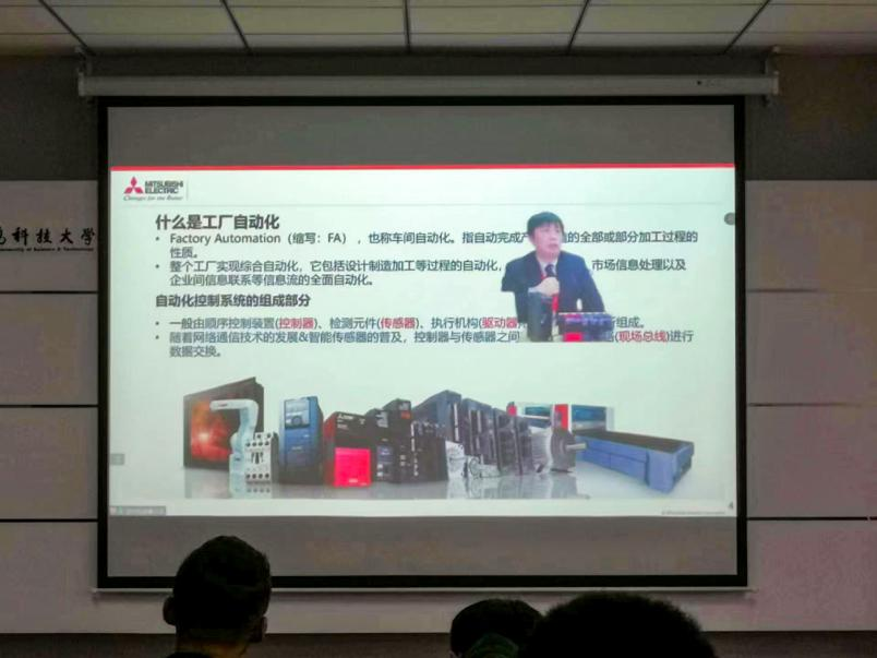 王博对自动化行业应用前景与发展方向进行讲解。以三菱企业自动化装备与自动化技术为载体,从学生常见的专业知识入手,介绍了自动化行业广泛的应用场景以及发展方向,希望学生对自己专业的了解更加深入,对将来职业生涯规划也更明确。