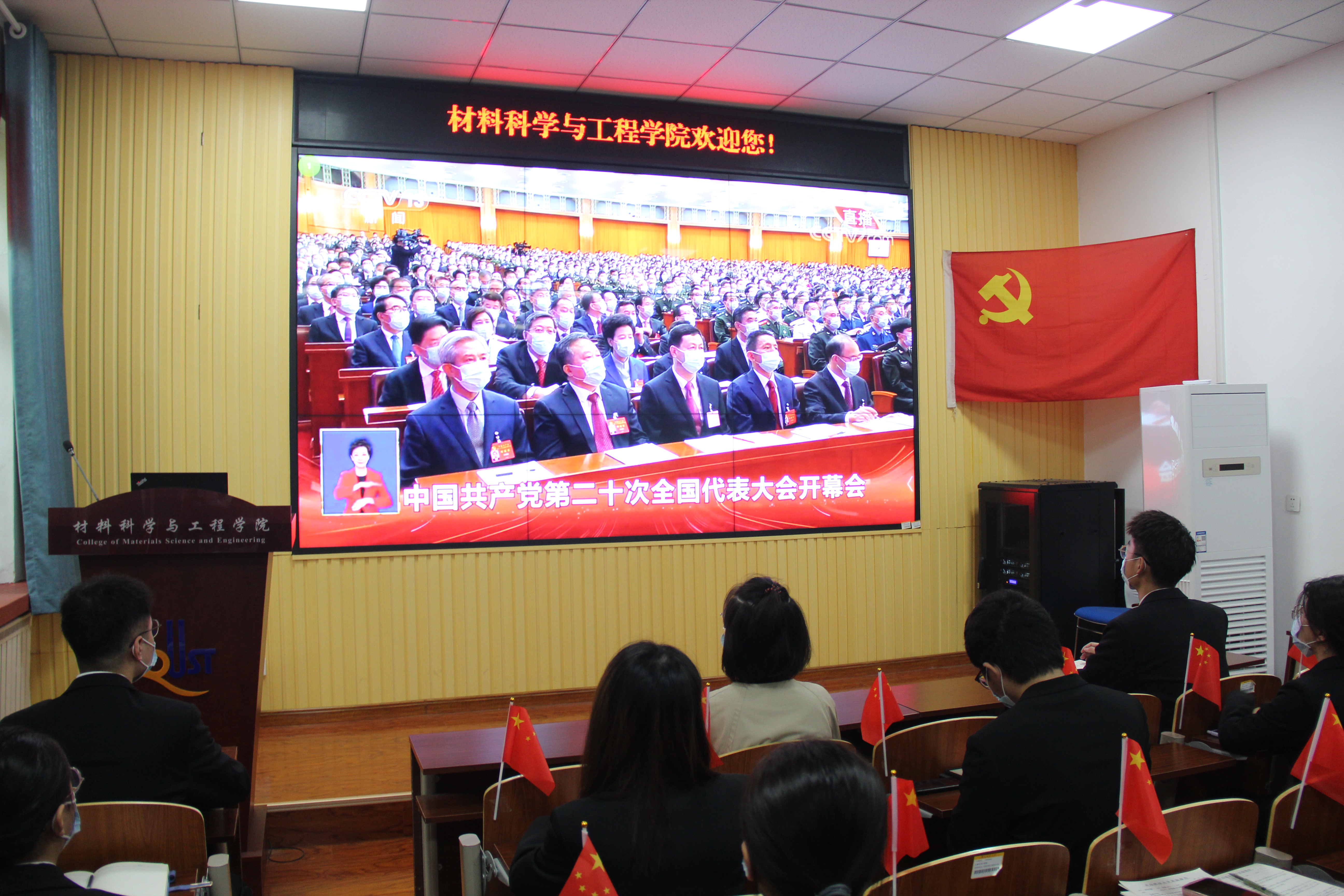 中国共产党第二十次全国代表大会于10月16日上午10时在北京隆重开幕,为共同关注这一历史性的盛会,认真学习习近平总书记代表十九届中央委员会作出的重要报告精神,10月16日上午,材料学院在学院楼101、203会议室组织师生以党支部、团支部、学生会、研究生会等为单位通过线上线下相结合的方式集中收看大会实况。