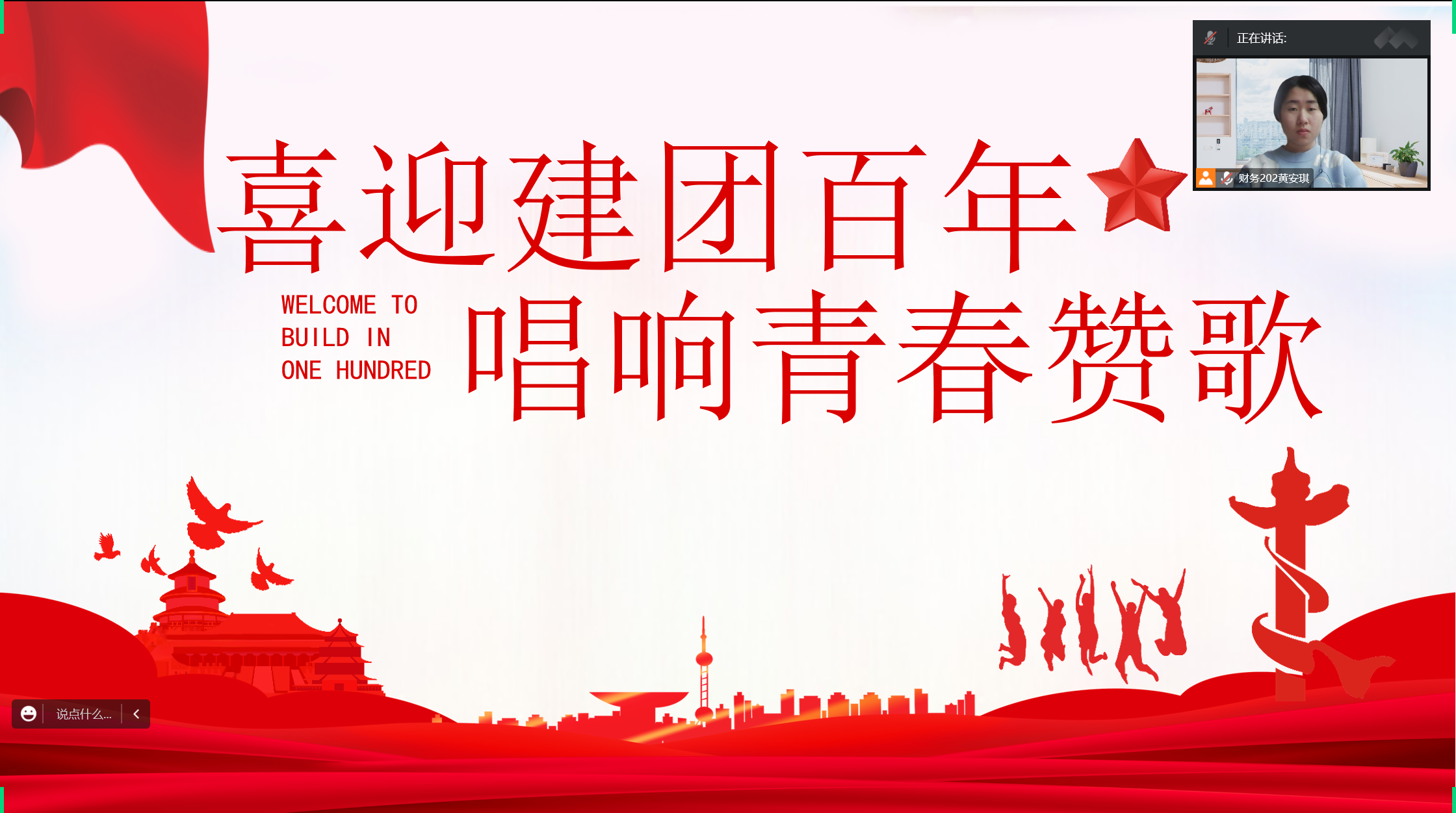 为更好的感悟红色精神,赓续红色血脉,经管学院学生会组织开展建团百年系列主题云团课,云团课由学生会成员黄安琪主持,学生会成员集体参与。中国共青团在100年来经受住了严峻的考验,广大共青团员坚定不移地投身于革命的洪流中。共青团走过的一百年,是千磨万击还坚劲、任尔东西南北风的一百年,是雄关漫道真如铁、而今迈步从头越的一百年。