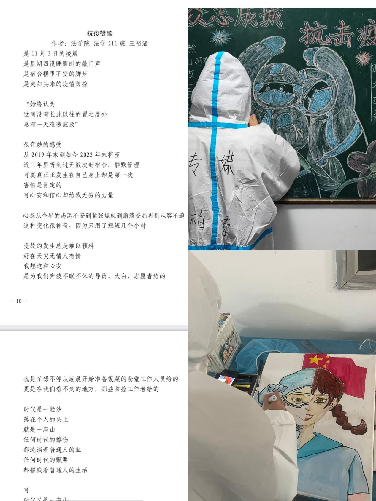 法学院与传媒学院共同拉起南2宿舍楼这支坚韧冲锋的队伍,坚守一线、众志成城,筑牢抗疫防护墙。临时团委迅速制定战疫方案,让869名学生感受到组织的力量与温暖。