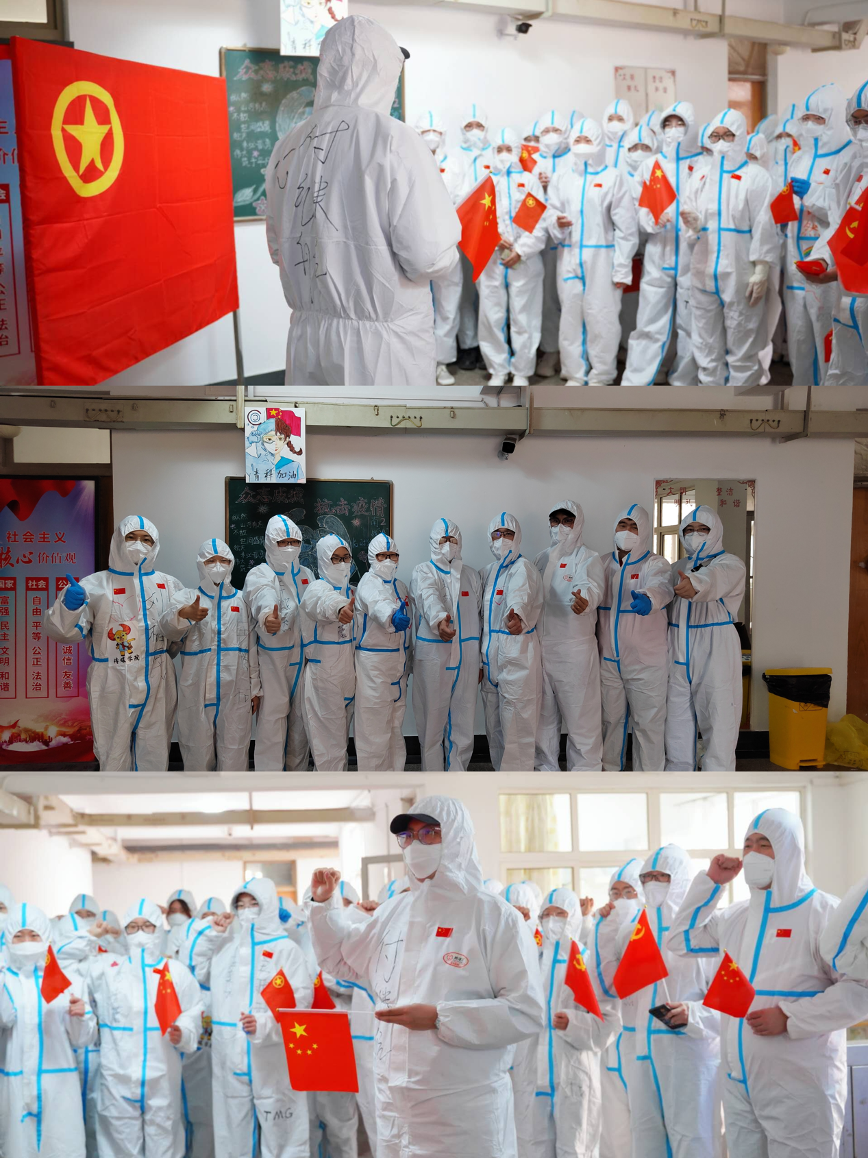团旗飘扬,信念不倒。南2宿舍楼临时团委的特殊团课让入团誓词回荡心怀,“我志愿加入中国共产主义青年团......”他们是党员,他们是团员,他们是平凡老师,他们是普通学生,他们披上“战袍”,他们有个共同的名字——大白。超能战队守护校园、守护家园。