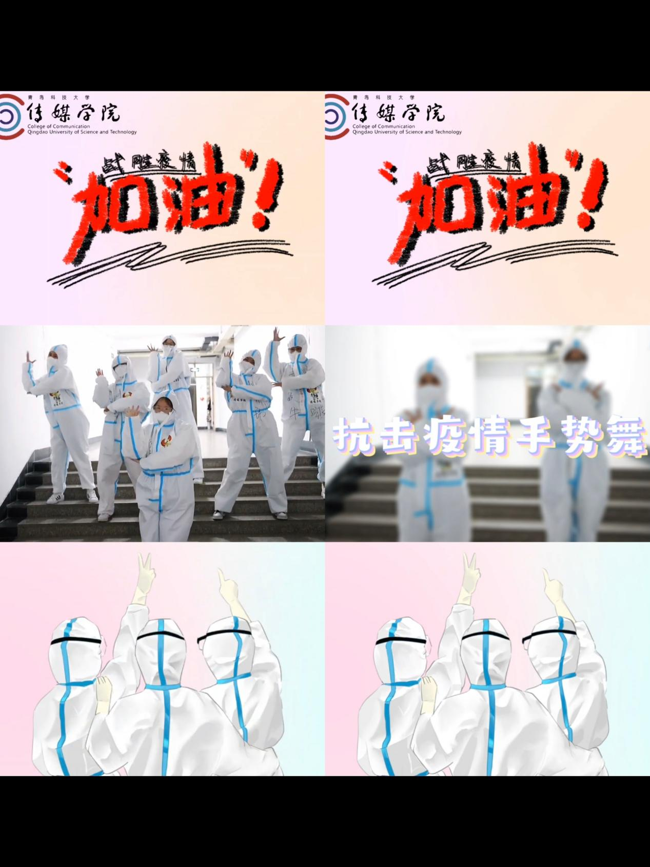 充分发挥共青团“第二课堂”育人功能,用青年的话语体系和喜闻乐见的方式,切实做好思想引领,为疫情防控工作保驾护航,临时团委动员广大青年学生结合自身特长和专业所学,创作抗“疫”作品,营造“疫情防控、人人有责”的浓厚氛围,其中法学院法学211班王裕涵同学创作的《战疫赞歌》被校宣传部刊发,传媒学院创作的《传媒版大白手势舞》等视频作品被AC米兰中国官网视频号、抖音等平台转发,极大地鼓舞了青科人战胜疫情的决心和信心;一张张便签溢出满满的感动;他们用手账记录,用绘画表达,用心灵守护;精心钩织的围巾,欢悦跳动的音符,那是青春的节奏,那是共青团精神的彰显。我们同心协力,用爱、用真心、用温暖战胜无情的病毒。