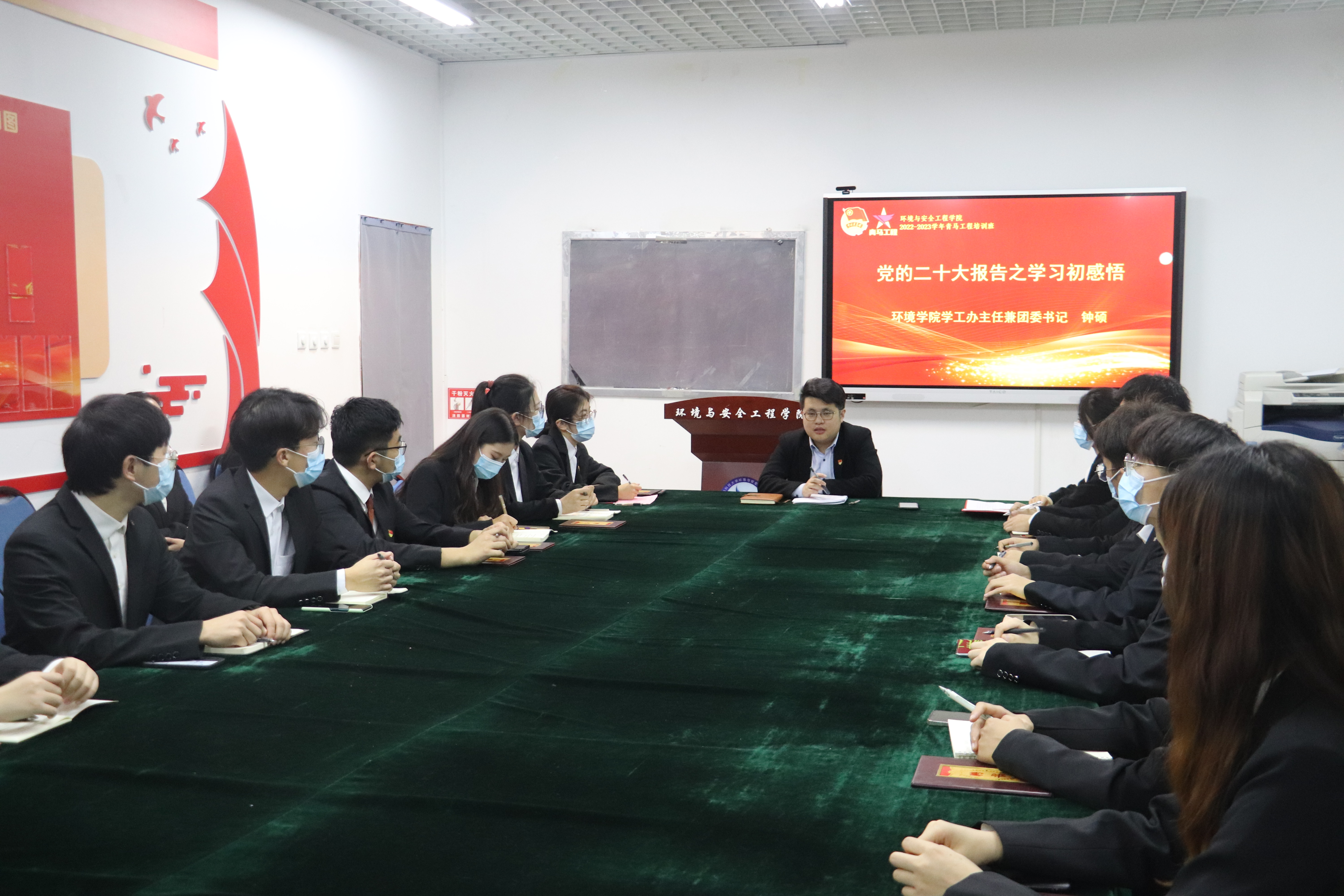 会后,钟硕结合自身学习实际,讲述了《党的二十大报告之学习初感悟》的青马工程主题团课。钟硕强调,学习宣传贯彻党的二十大精神是当前和今后一个时期的首要政治任务,广大学生干部要以强烈的政治责任感,确保党的二十大精神落地生根、开花结果。要充分认识大会的重大意义和丰富内涵,深刻领悟“两个确立”的决定性意义,深刻领悟“三个务必”的重要要求,牢牢把握过去5年工作和新时代10年伟大变革的重大意义,牢牢把握习近平新时代中国特色社会主义思想的世界观和方法论,牢牢把握以中国式现代化推进中华民族伟大复兴的使命任务,牢牢把握以伟大自我革命引领伟大社会革命的重要要求,牢牢把握团结奋斗的时代要求,切实把思想和行动统一到党的二十大精神上来,以极大的责任感与使命感,着力提升共青团“三力一度”。