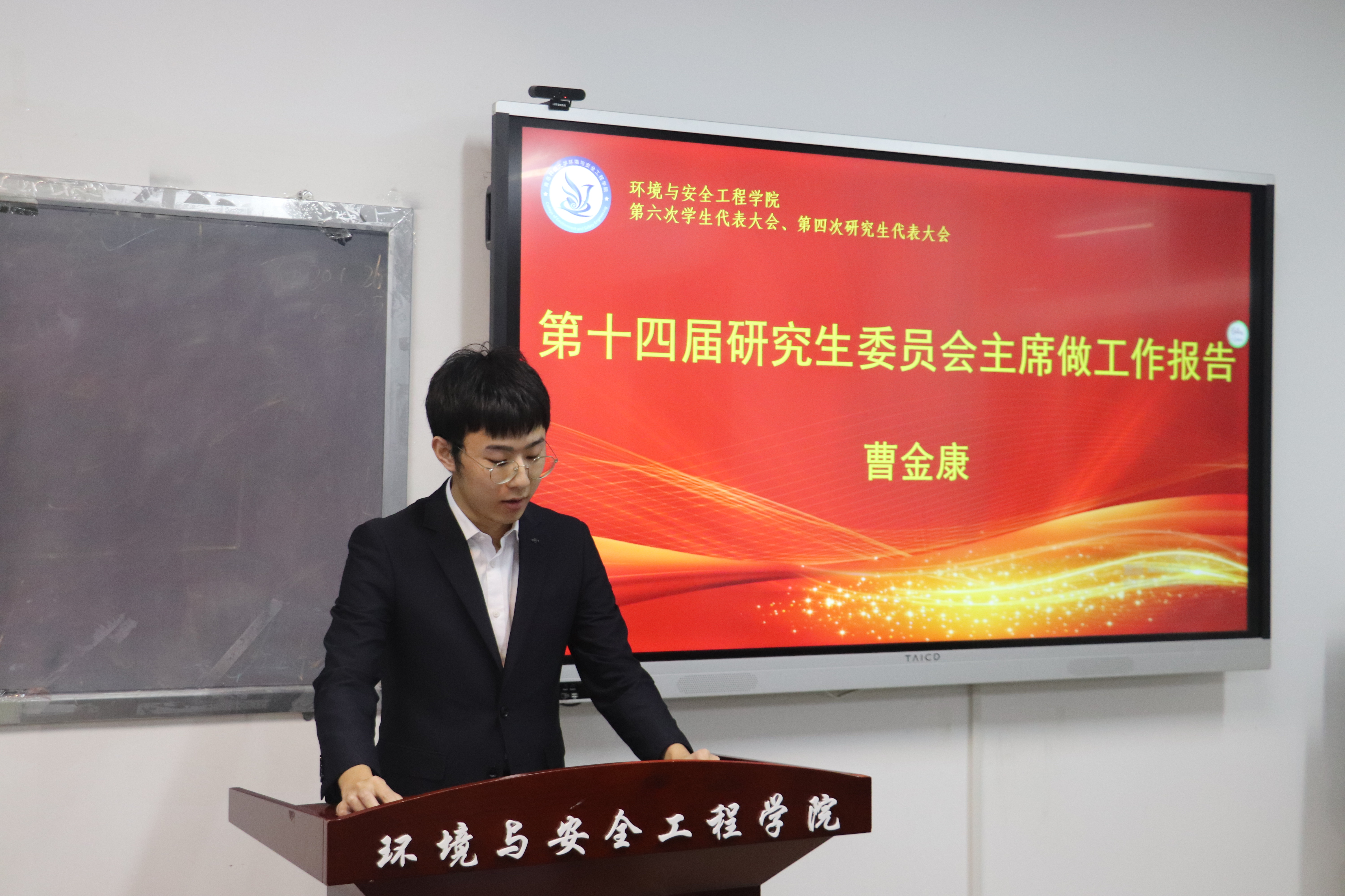大会在雄壮的国歌声中拉开帷幕。大会听取、审议并通过了周少杰同学代表学院上一届学生会所作的《明确职责定位,服务青年成长,贡献青春力量》的工作报告;听取、审议并通过了曹金康同学代表学院上一届研究生会所作的《传承家风勤奋斗,环境报国勇争先,争做学院研究生高质量教育体系和高水平科技自立》的工作报告。