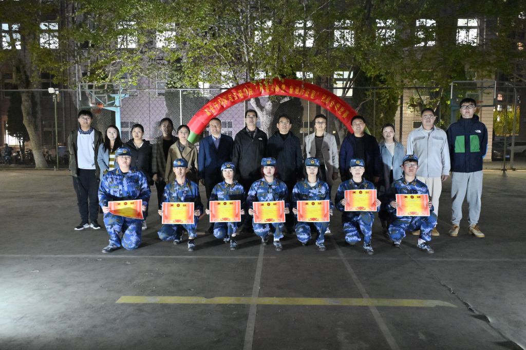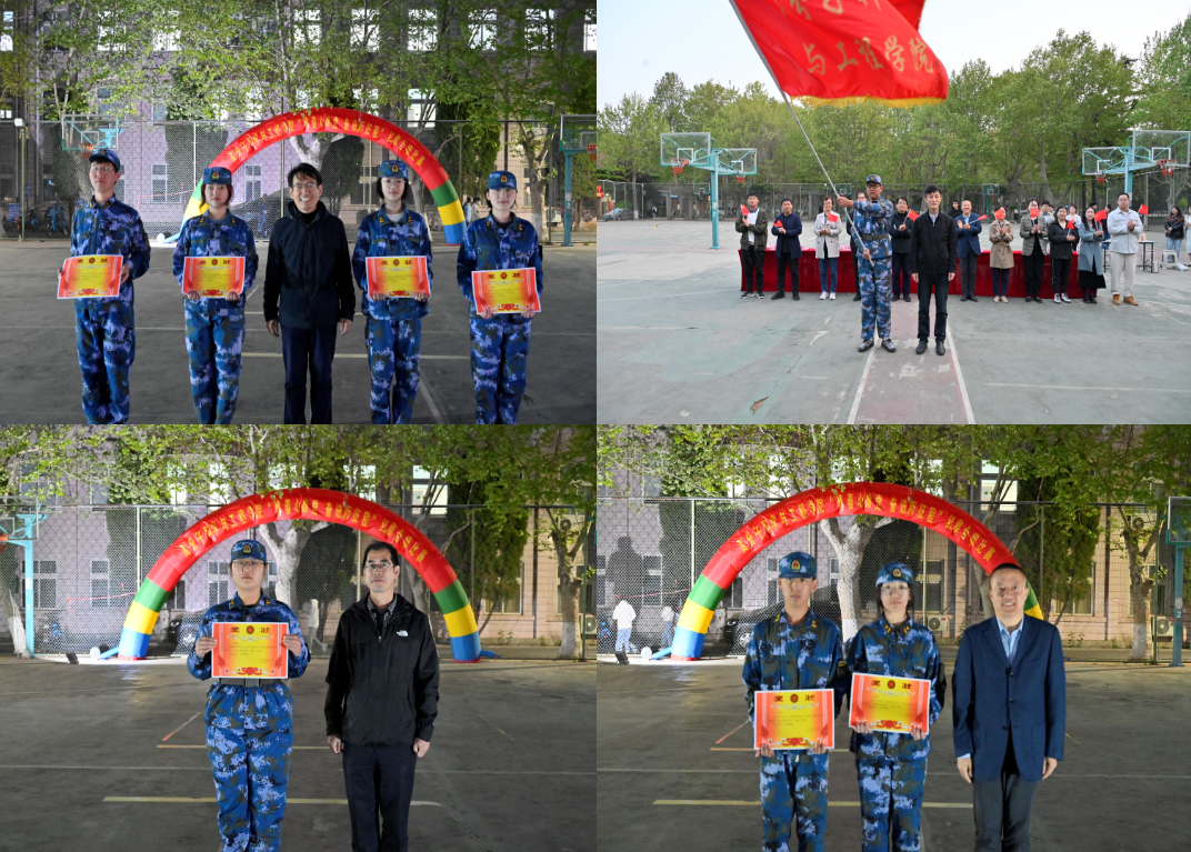 活动上闫业海为高分子学院所在营授旗,曹永俊、杨小明为学院军训先进个人代表颁奖。