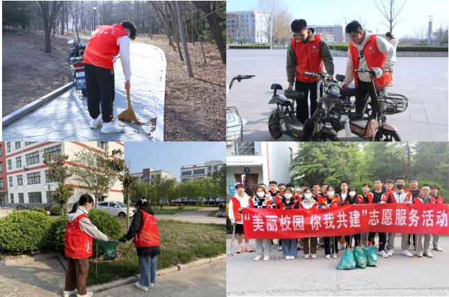 牢记青春使命,承担时代重任,用行动践行初心。校区蒲公英志愿服务团开展“学习榜样力量,美丽校园同行”志愿服务活动,对校园、公告栏、路灯等处的环境卫生进行清洁打扫,用实践行动将劳动创造美好生活的种子根植于心。化工专业团支部开展“庆五一 劳动美”为主题的环保徒步捡拾垃圾活动,在公益志愿服务中提高保护环境、增强劳动环保意识。英语专业团支部组织“窗明几净,爱校如家”的五一劳动节主题活动,对宿舍卫生进行彻底清理。校区各学生社团纷纷开展“劳动创造新室界”寝室大扫除,学生干部带头,争做劳动先锋。