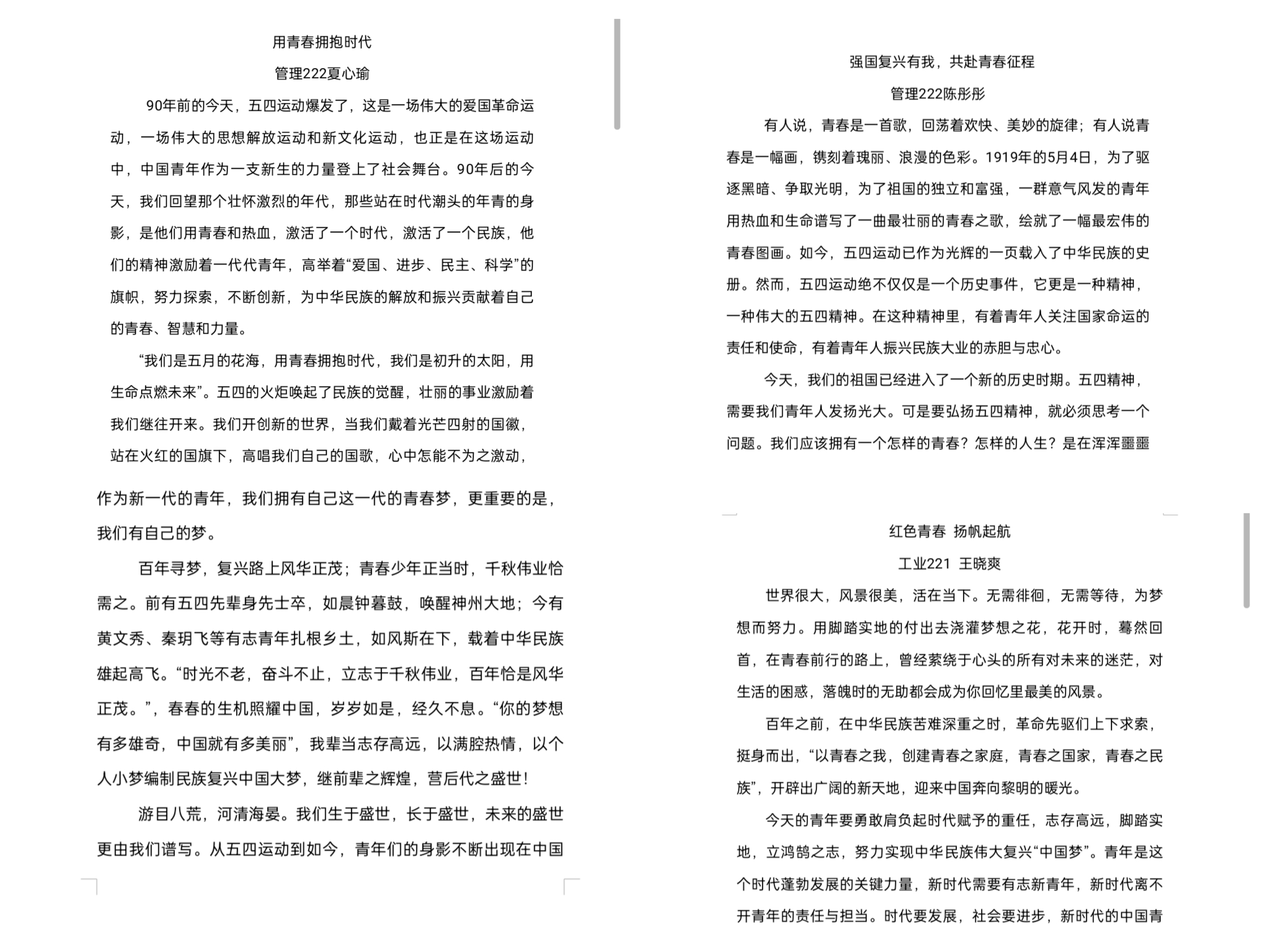 在五四青年节来临之际,为进一步弘扬 “爱国、进步、民主、科学”的五四精神,引领广大青年坚定理想信念,勇于担当使命,在奋斗中展现青春力量。经管学院团委将“三全育人”与“五育并举”深度融合,组织开展了“五四精神传薪火,挺膺担当谱华章”纪念五四青年节系列主题活动,以“红色青年”“读书青年”“运动青年”“文艺青年”“志愿青年”等五好特色青年致敬五四。