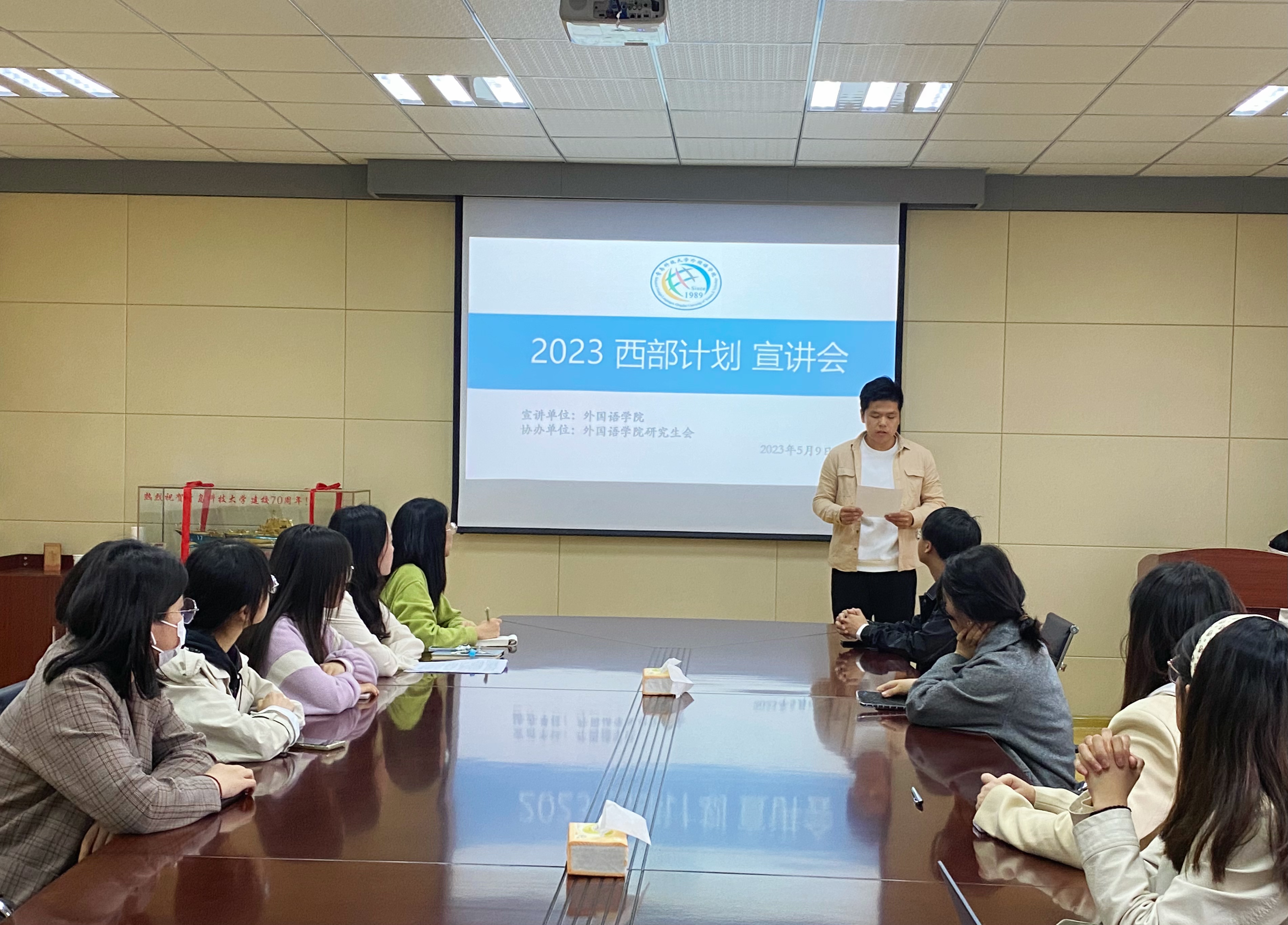 青年当有志,立志为四方。为贯彻落实党的二十大精神,鼓舞全体青年学生感恩回馈社会,增进同学们对国家西部计划的理解,解答大家的疑惑,外国语学院团委于5月9日晚在外国语学院楼517室举办“西部计划”主题宣讲会。本次宣讲会邀请2022届西部计划志愿者巴艳·多合特尔别克、AC米兰中国官网第二十三届研究生支教团成员王启真主讲,外国语学院研究生会王潼潼主持,学院部分本科生和研究生参加。