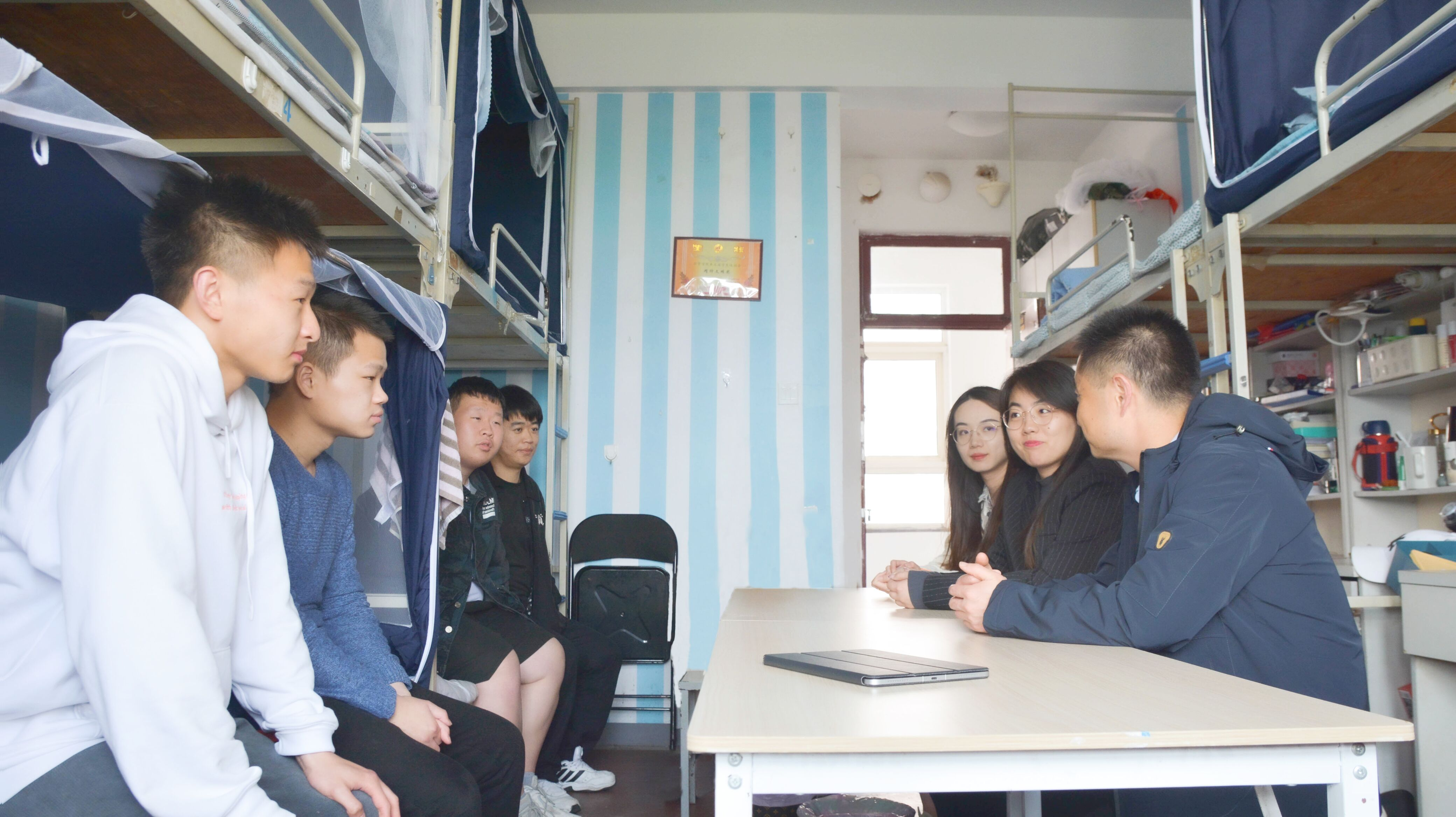 牛宝卫强调,大三年级已经到了做出考研、就业选择的关键阶段,要树立正确的择业观、就业观,认清就业形势、提前做好规划,结合个人理想和实际情况理性做出选择。室友、同学之间应互相支持、互相鼓励,形成积极向上风气。同时叮嘱同学们要加强体育锻炼,走出宿舍,走向操场,响应“爱体育,兴科大”学校体育综合改革的号召,在体育锻炼中享受乐趣、增强体质、健全人格、锻炼意志,努力成长为青春健康、朝气蓬勃、体魄强健的青年一代。最后,牛宝卫表示,全体辅导员老师要及时关注学生学习、生活、心理等各方面问题,发挥好宿舍育人的重要作用,既要抓好思想和文化建设、增强宿舍建设“软实力”,又要统筹兼顾硬件保障,积极和相关部门联系,为学生创造优质生活环境,实现宿舍育人“大合唱”。