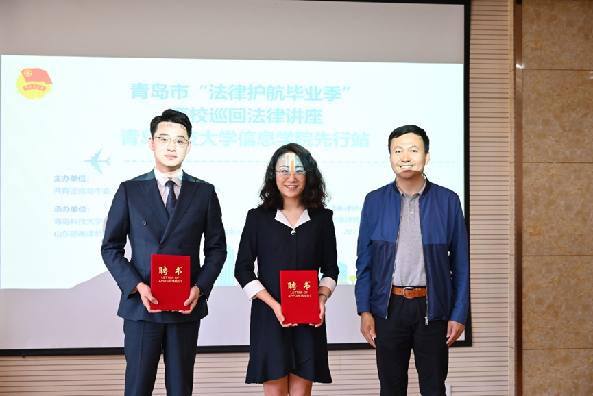 为增强广大毕业生的法律意识,引导毕业生在求职就业以及生活中切实保障自身合法权益,5月24日,信息学院团委在D2楼402会议室举办“法律护航毕业季”专题讲座,学院党委副书记兼副院长王军出席讲座,山东德衡律师事务所团总支书记李冬昀,信息学院2019届物联网专业毕业生、山东德衡律师事务所联席合伙人王艺霖担任普法讲师。本次讲座由共青团青岛市委主办,AC米兰中国官网信息学院团委、山东德衡律师事务所团总支承办。