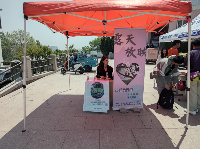 为打造良好的观影体验,保障放映活动顺利开展,传媒学院研究生会在活动前一天安排试映活动,并在当天放映前安装幕布、摆放板凳、有序检票、维护秩序,并为同学免费发放小吃和矿泉水。此外,活动前期,传媒学院研究生会还完成了选片、海报设计等组织和宣传工作,并于516日在南苑食堂门口面向全校同学免费发放50张电影票。