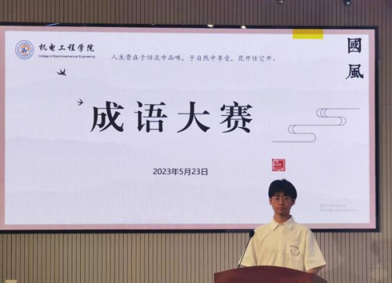 为丰富学生校园文化生活,展现中华优秀传统文化魅力,推进机电工程学院学风建设,5月23日下午,机电学院团委在机电楼530举行“国学成载,花开语来”成语大赛决赛。