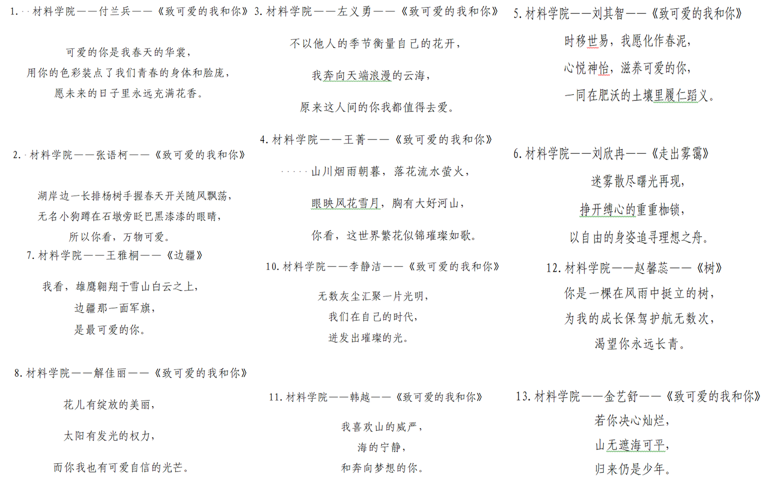 学院举办的“5·25”系列活动之“画出心声,写下心海”心理健康手抄报活动和“致可爱的我和你”三行诗评比活动同学们积极参与,将自己的所思所想所悟通过笔尖传达出来。此活动营造了积极向上的文化氛围,围绕主题或独立完成或小组合作,通过网络和书籍搜集资料、认真选材,精心设计、绘画,制成了一幅幅版面精美、内容丰富、布局新颖的作品,向大家展示向上向善的心理健康风貌。此活动丰富了学生的课余生活,为同学们提供一个展示自我魅力的平台。