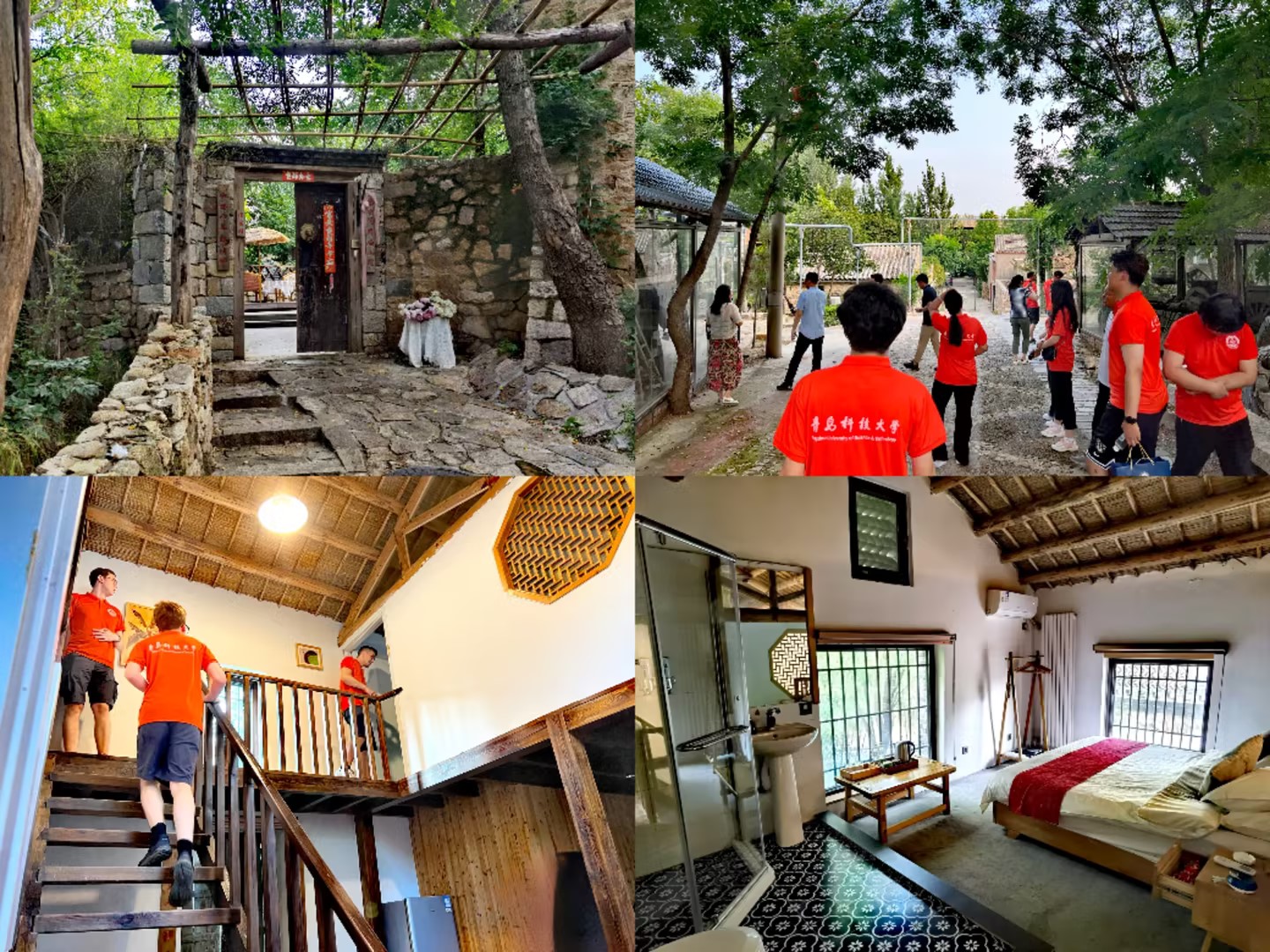 随后,实践队对当地特色民宿产业进行调研。据负责人介绍,水牛埠村在保留村子原始风貌的基础上,打造精品民宿院落,游客们可在此享用地方美食、娱乐休闲、网红下午茶打卡等,形成了具有当地特色的民俗体验,吸引各地游客纷至沓来。实践队成员Felix、Marcel和Walter对民宿感到非常新奇,感叹房屋的巧妙设计,纷纷拍照留念。