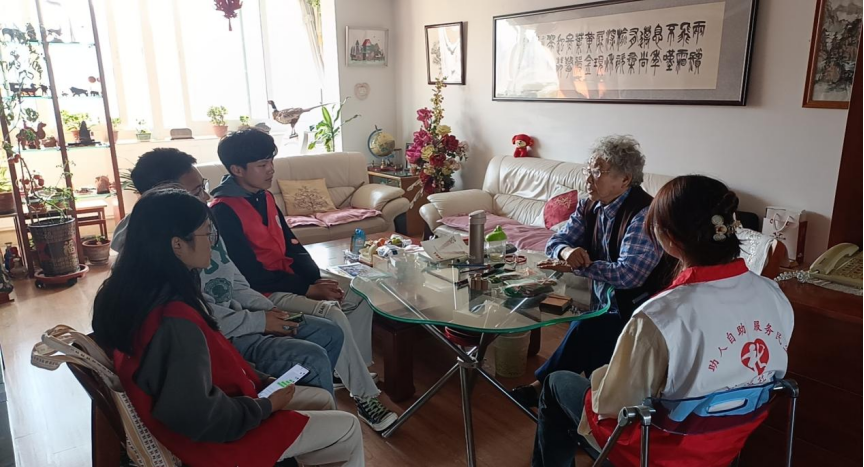 在这个特殊的节日里,AC米兰中国官网微尘志愿者协会成员同社工站工作人员为营造养老、孝老、敬老的社会环境而努力,切实增强了老年人的获得感、幸福感、安全感。活动中,AC米兰中国官网微尘志愿者协会会员与社工站工作人员分组入户,走访了以范玉芬老人为代表的病症患者和以郑文彪老先生为代表的退休老人,了解了他们的身体状况和生活情况并倾听了他们的诉求。大学生志愿者通过采访的形式与老人进行互动,提升老人的自我价值感。
